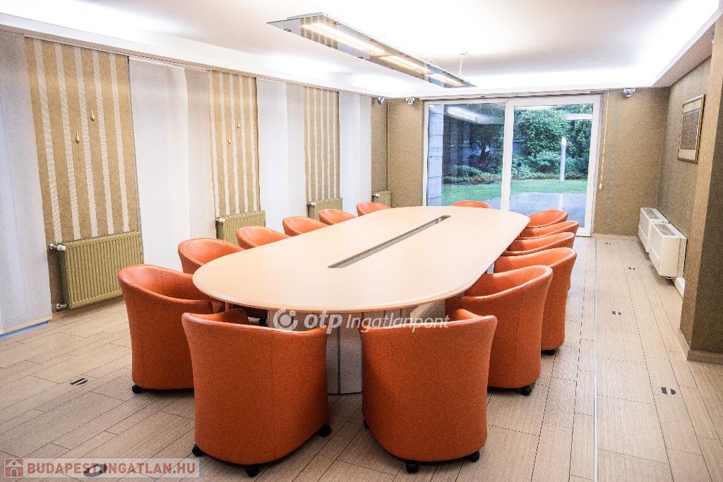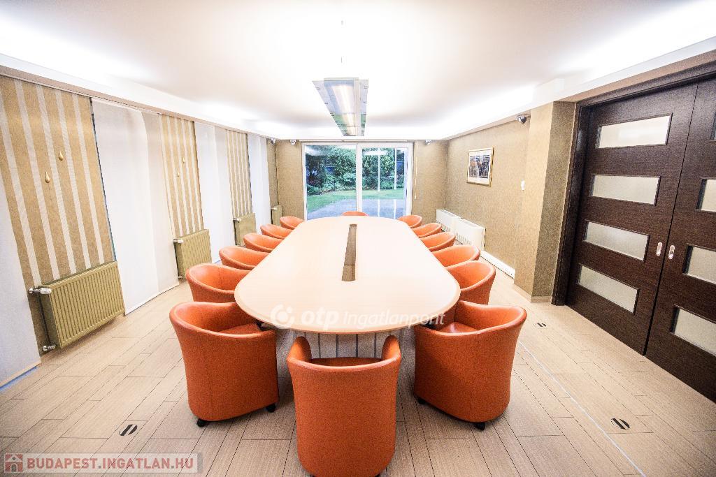 Az épületben egy hatalmas előtér, egy nagy-tárgyalóként használható helyiség, 4 kis-tárgyalónak is beillő helyiség és további 6 szoba is található összekötő terekkel, a szinteket összekötő lifttel, egy nagy garázzsal, a garázsszinten szintén szobákkal és egy konyhával-ebédlővel.