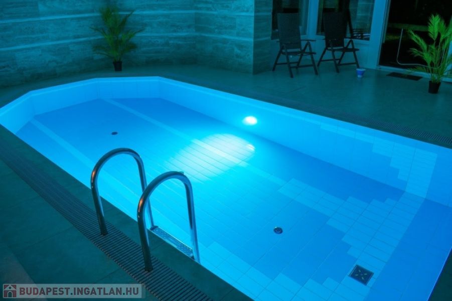 - fűthető medence, Változtatható fényű led világítással, mérete: 6.5 X+3X 1,4 Méter