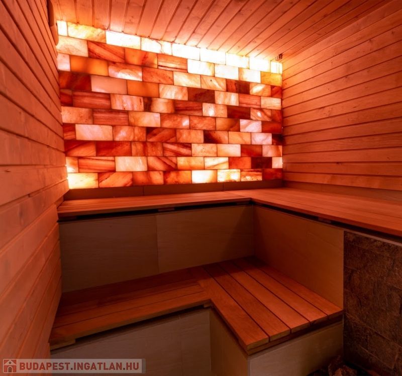 - a nagy wellness helyiség, mely tartalmazza a finn szaunát, gőz szaunát, zuhanyzót,