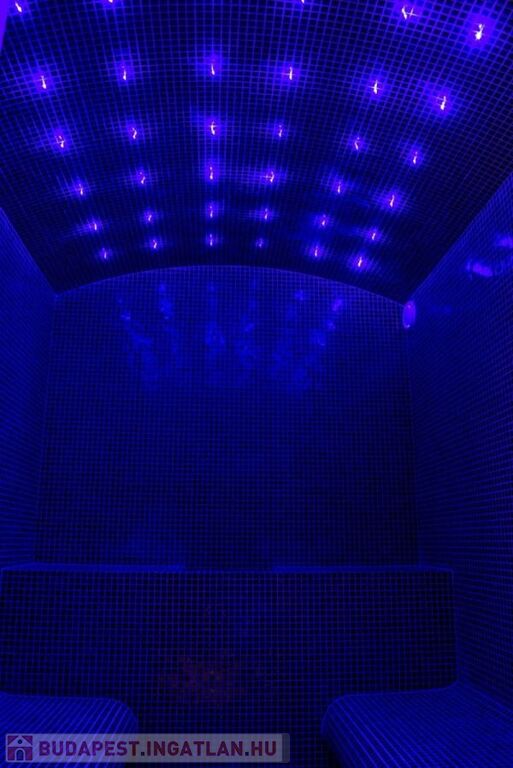 - gőz szauna, az íves plafonján különleges led „ csillag fényes égbolttal), mely színe állítható, teljes belsejét különleges mozaikok díszítik,