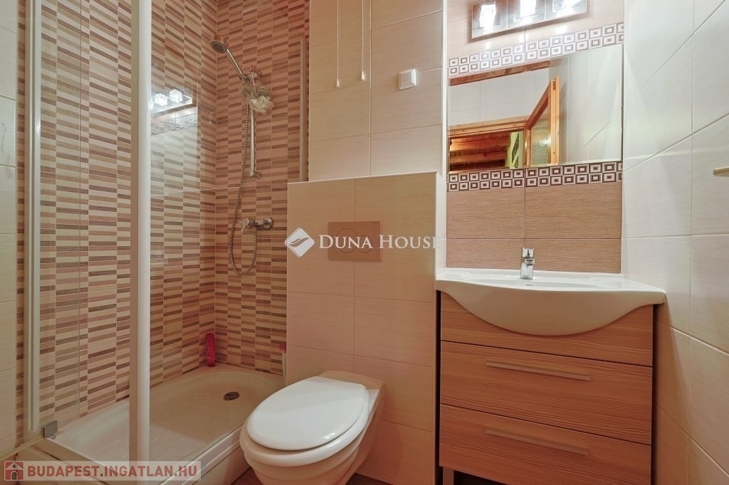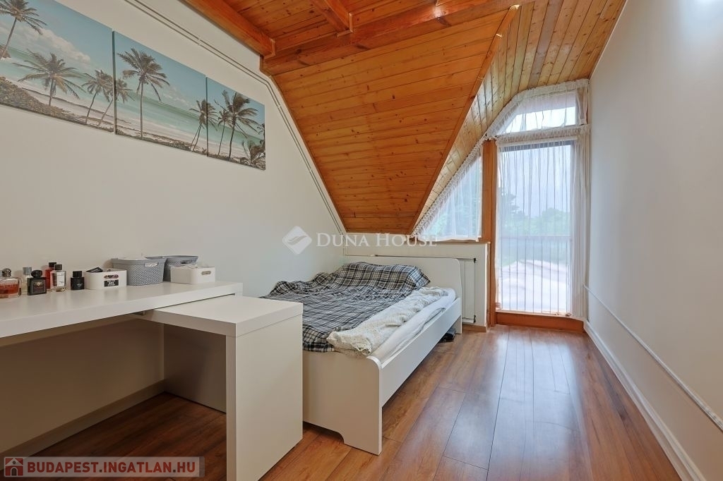 Eladó a 2/A kerületben csendes, nyugodt utcában egy 162 nm-es sorházi lakás.A telek 1004 nm, amin két lakás van, osztatlan közös tulajdon, ügyvédi használati megosztó szerződéssel.Előkert, hátsókert 220 nm, gyümölcsfákkal, teljesen elkerítve a szomszédtól.A ház alatt garázs, kazánház, mosókonyha zuhannyal, közlekedővel.A földszinten nyitott terasz, nappali, hálószoba, előszoba, konyha étkezővel, fürdőszoba WC-vel.A tetőtérben fürdőszoba WC-vel, s három külön nyíló szoba van.Műszaki jellemzők :A fűtés FÉG gázkazánnal történik, a földszinten padlófűtés, az emeleten radiátorok vannak. A melegvizet 300 literes Concept villanybojler biztosítja.A konyhában Teka páraelszívó, Whirpool 12 terítékes mosogatógép, Electrolux sütő, Gorenje gázfőzőlap biztosítja a kényelmes főzést.Az otthon külső kamerával felszerelt, riasztó, kaputelefon is van.Napkollektor csatlakozás ki van építve,Az egészséges ivóvizet beépített vízszűrő berendezés biztosítja.A házat 1990-ben építették, 2014- ben felújították.A felújítás során kicserélték a víz- és villanyvezetékeket, ajtókat ( lucfenyő ), ablakokat melyek szintén borovi fenyőből készült, kétrétegű szigeteléssel.A burkolatokat is kicserélték, felújították a padlófűtést, a ház kapott 15 cm-es kőzetgyapot szigetelést, a padláson pedig 20 cm-es ökológiai habosított papír szigetelést.A hely:Kiváló közlekedés, 10 perc sétára van a 164, 64, 257, 57 buszmegálló ,.Iskolák, rendelők, gyógyszertár, bevásárlóközpont a közelben.