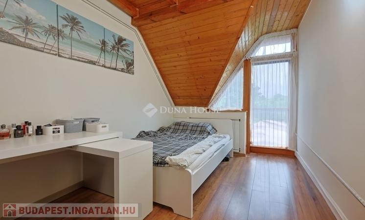 Eladó a 2/A kerületben csendes, nyugodt utcában egy 162 nm-es sorházi lakás.A telek 1004 nm, amin két lakás van, osztatlan közös tulajdon, ügyvédi használati megosztó szerződéssel.Előkert, hátsókert 220 nm, gyümölcsfákkal, teljesen elkerítve a szomszédtól.A ház alatt garázs, kazánház, mosókonyha zuhannyal, közlekedővel.A földszinten nyitott terasz, nappali, hálószoba, előszoba, konyha étkezővel, fürdőszoba WC-vel.A tetőtérben fürdőszoba WC-vel, s három külön nyíló szoba van.Műszaki jellemzők :A fűtés FÉG gázkazánnal történik, a földszinten padlófűtés, az emeleten radiátorok vannak. A melegvizet 300 literes Concept villanybojler biztosítja.A konyhában Teka páraelszívó, Whirpool 12 terítékes mosogatógép, Electrolux sütő, Gorenje gázfőzőlap biztosítja a kényelmes főzést.Az otthon külső kamerával felszerelt, riasztó, kaputelefon is van.Napkollektor csatlakozás ki van építve,Az egészséges ivóvizet beépített vízszűrő berendezés biztosítja.A házat 1990-ben építették, 2014- ben felújították.A felújítás során kicserélték a víz- és villanyvezetékeket, ajtókat ( lucfenyő ), ablakokat melyek szintén borovi fenyőből készült, kétrétegű szigeteléssel.A burkolatokat is kicserélték, felújították a padlófűtést, a ház kapott 15 cm-es kőzetgyapot szigetelést, a padláson pedig 20 cm-es ökológiai habosított papír szigetelést.A hely:Kiváló közlekedés, 10 perc sétára van a 164, 64, 257, 57 buszmegálló ,.Iskolák, rendelők, gyógyszertár, bevásárlóközpont a közelben.