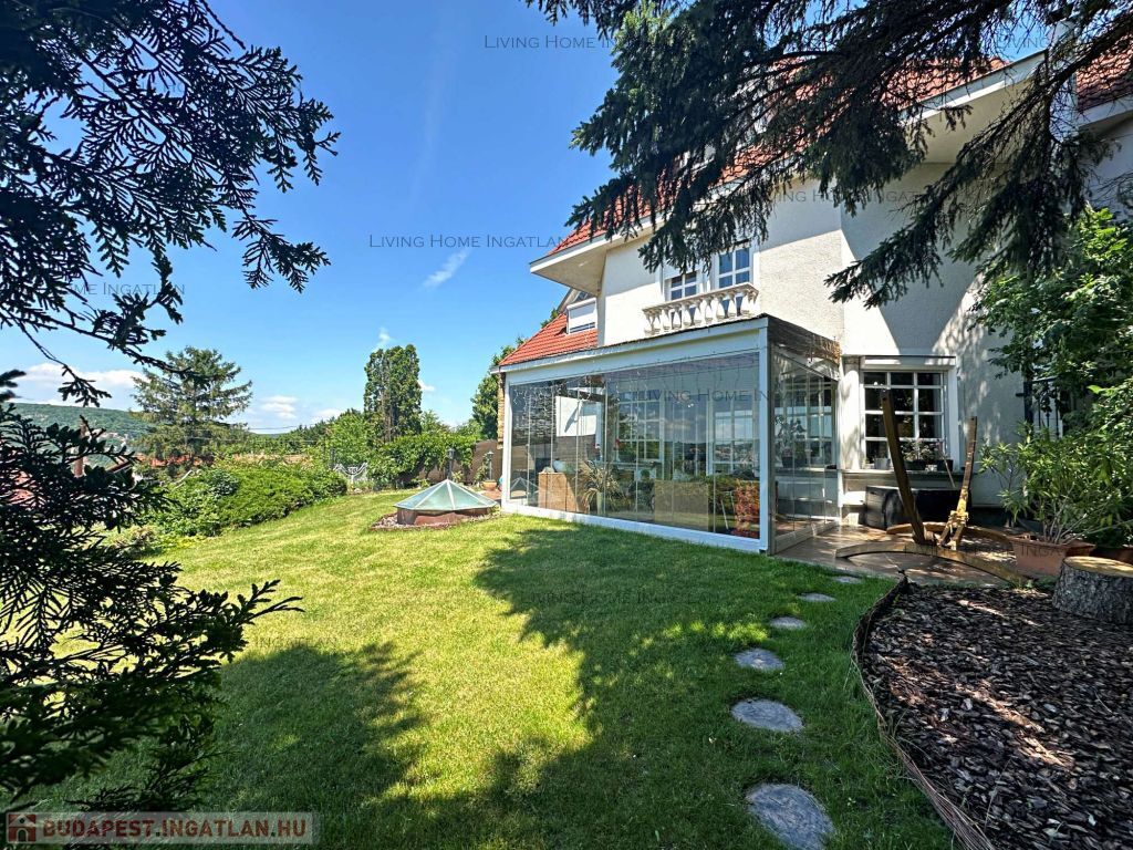 For sale a panoramic, central apartment of a 3 apartment terraced house in Remetekertváros, district II/A in one of the most exclusive, greenest part of the city. The property is located close to a nature reserve and is quiet, unique and has a split-level design. Its most impressive feature is the glazed winter garden with 180 degree panoramic views.
