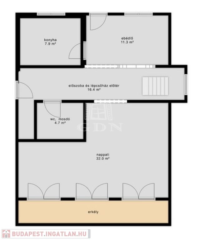 • Földszint: világos, napfényes nappali egyedi elválasztófallal, tágas