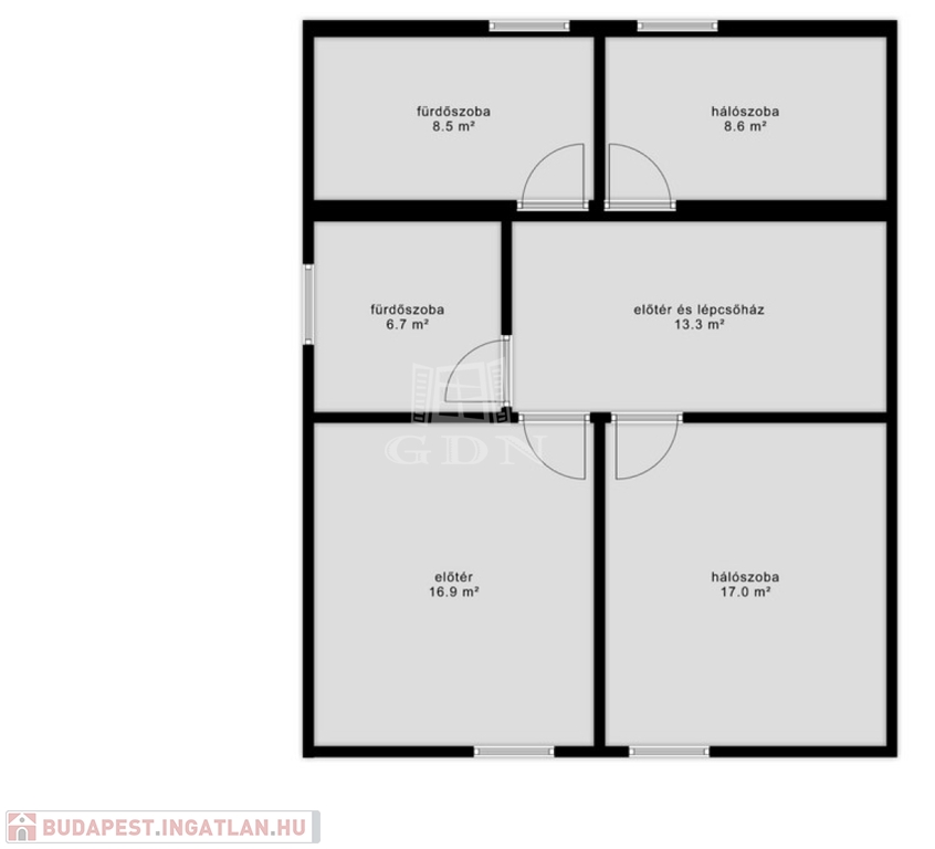 • Tetőtér: három szoba, kettő fürdőszoba (kád, zuhanyzó, bide)