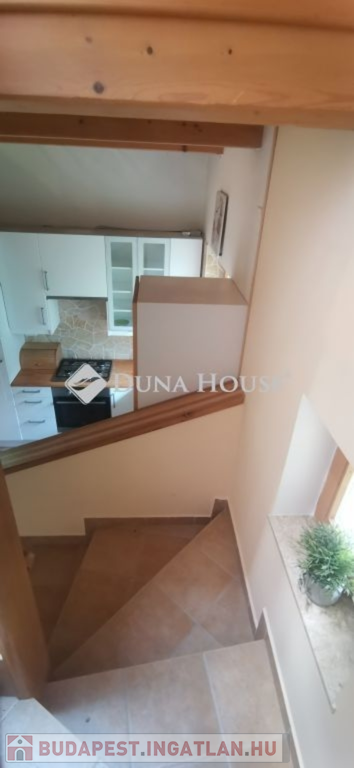 A ház 2005-ben épült, egyedi kialakítású, tetőtér beépítéses, kétszintes tégla családi ház. Az ingatlan egyik nagy előnye, hogy akár két generáció együttélésére is alkalmas. Együtt de mégis külön! A házat egy hatalmas kert, borospince, nagyméretű garázs, valamint további autóbeállási lehetőség teszi még kényelmesebbé a nagycsaládosok számára.Fűtése, meleg víz ellátása gáz cirkóval megoldott, a földszinten padlófűtéssel kiegészítve.A két generációs házban az egyik lakrész 35 m2 nagyságú, a földszinten a bejárattól jobbra található, amely áll egy előtérből nyiló szobából, konyhából és fürdőszobából, wc-vel. A konyhából egy átadó ablak nyílik a nappaliban lévő étkezőasztal felé, amely a családi összejöveteken praktikus megoldás a vendégek kiszolgálására. A nappali különös hangulatát a három oldalán elhelyezkedő kazettás fa ablakok adják, melyek révén mintha közvetlenül a fák tövében ülnénk, miközben szemlélhetjük a természet zöldjét az énekesmadarak, a mókusok játékát. Igazán különleges érzés, bent vagyunk, de mégis kint érezzük magunkat!A másik lakrészhez tartozó konyha a tágas nappali túloldaláról nyílik, amely a hátsó kertre nyílik és az oldalkertre néz, modern és kényelmes U-alakú elrendezésével. Itt található még egy háztartási helység és egy wc mosdóval. Innen jutunk fel a kétkarú lépcsőn az emeletre, amely egy egy légterű, fenyőfával burkolt tetőtéri nappali dolgozósarokkal. Ez egy légkondcionálóval ellátott, napfényes, hatalmas belső tér, amely sok lehetőséget rejt magában, plusz érdekes megoldás, hogy körben üvegpadló van, amely a fölszinti nappalit is plusz természetes fénnyel látja el. Nagyon hangulatos, a fényképek nem adják vissza, hogy mennyivel növeli a térérzetet ez a különleges padló kialakítás.A felső szinten ezen kívül egy kisebb szoba, gyerekszoba található, melllette zuhanyzós fürdőszoba wc-vel és a hálószoba a teljes faltól-falig tartó diófa terasszal! Erről a fedett teraszról is lenyűgöző, örökpanorámás kilátás nyílik a budai hegyekre, amelyet a teljes szélességében eltolható nyílászárókkal élvezhetünk maximálisan. A kert hatalmas, kissé emelkedik felfelé a kert vége felé, felúton a domboldali borospince, amely egy földdel borított boltíves hobbit pince.A ház szigetelt, szépen bevakolt, nagyon jó állapotban van, a tulajdonosok építették a család részére, kezdetnek nyaralóként, aztán állandó lakhelyként szolgált. Jelenleg nem lakják az ingatlant, gyorsan birtokba vehető. A környék csendes, pár utcával odébb található buszjárat 10 perc alatt Hűvösvölgyben van, onnan a város fél óra alatt elérhető. A közelben óvoda, iskolák, kisebb boltok, éttermek, szolgáltatók megtalálhatóak és persze rengeteg kirándulási lehetőség.Nézzük meg együtt, ne maradjon le erről a hangulatos, egyedülálló ingatlanról! Töltse már itt a nyarat!