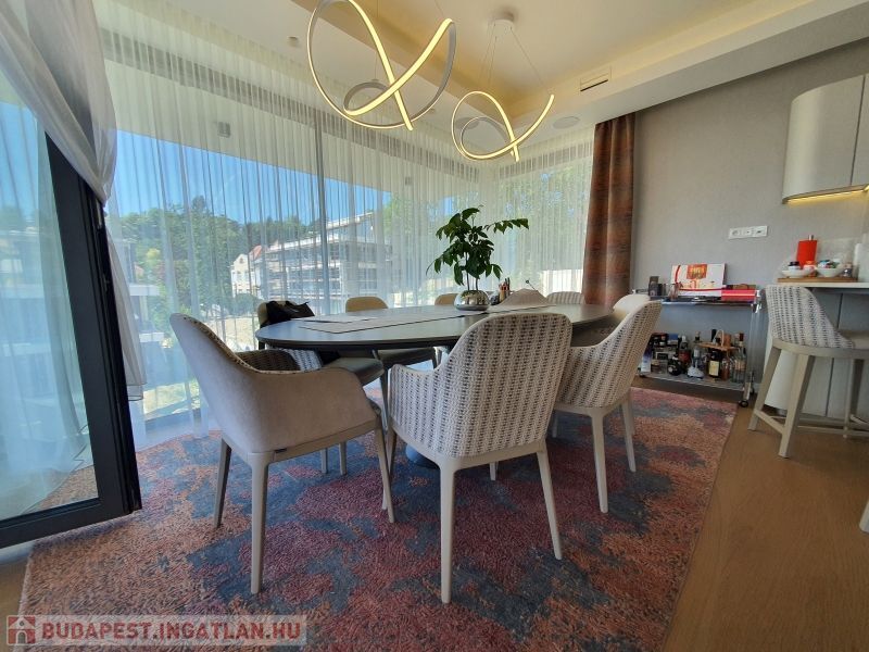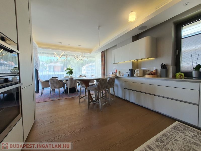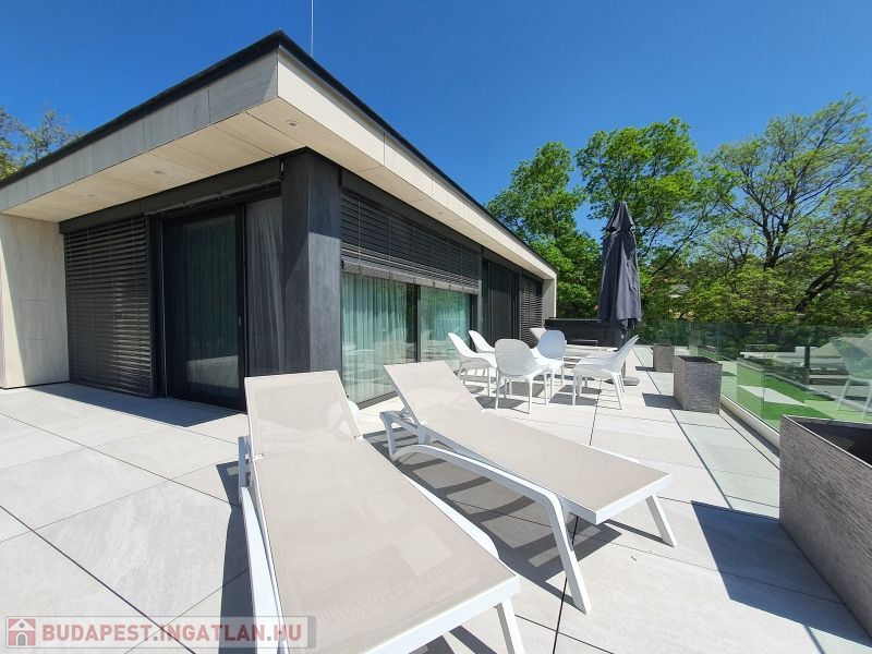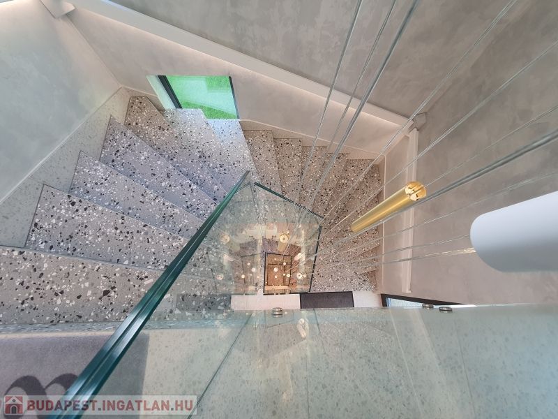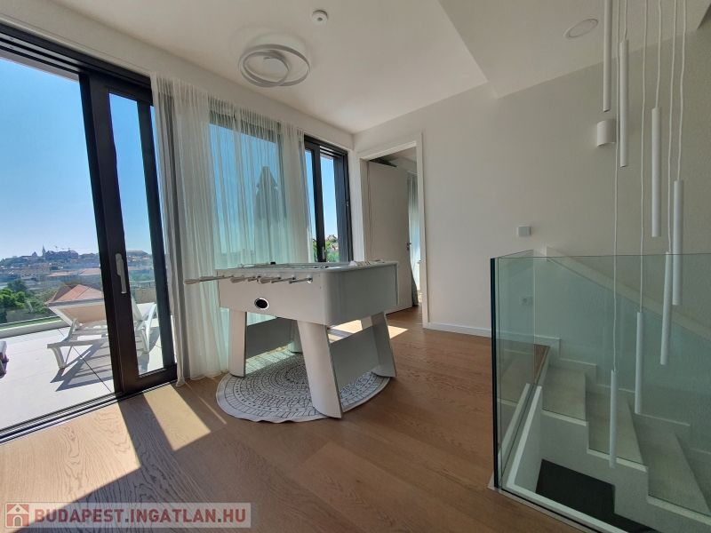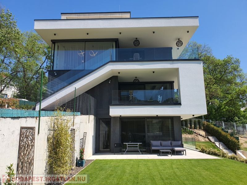 A 600 m2, 3-apartment, panoramic, minimal design luxury villa with elevator, built in 2021 is for sale at 2nd district Rézmál on a 1,005 m2 lot, accessible from two streets, with sophisticated interior design solutions, a 4-space garage.