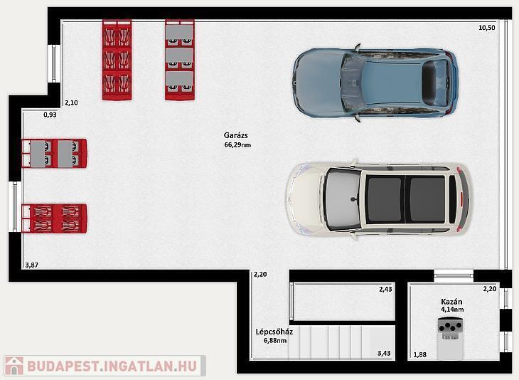 A 2001-ben épült, szigetelt ikerhházfél alsó szintje 77nm, melyben a garázs és a kazánhelyiség találhatóak.