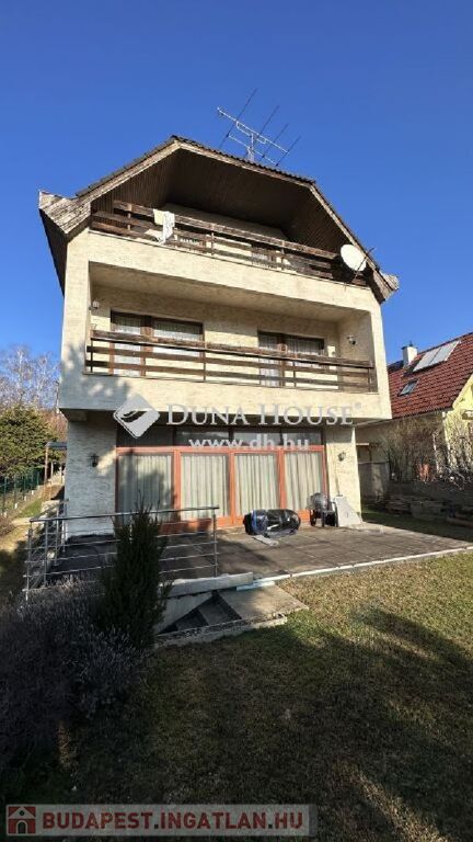 A II. kerületben Pesthidegkúton eladó egy 586 m2-es telken álló 286 m2 -es, 4 szintes,8 szobás, 3 fürdőszobás, nagy teraszos, 2 erkélyes, jó állapotú családi ház. Kiváló lehetőség nagyobb családok számára, több generáció együttélésére számára.A szintek mondhatni külön életterek, kis apartmanként funkcionálnak.Minden szoba külön nyíló!ÉPÜLET ÉS A TELEK JELLEMZŐI:A telek belterületi, szabályos négyszög alakú, felszíne sík, utcafrontja északi.Teljesen körbekerített, füvesített.Az ingatlan összközműves, minden közmű saját mérőórával rendelkezik.A ház az utcafronttól beljebb helyezkedik el.A ház 1997-ben épült, hagyományos építési technológiával.Alapozás: beton sávalapFüggőleges teherhordó szerkezet: tégla falazó elemVízszintes teherhordó szerkezet: monolit vasbeton födémTetőszerkezet: faszerkezetű, kontyolt nyeregtetőTetőfedés: beton Bramac cserépfedésKülső falfelület: dörzsölt vakolatBelső padlóburkolat: kerámia és parkettaFűtés és meleg vízellátás: házközponti rendszerű, gázkazánról működik.Nyílászárók külső: faszerkezetű, hő és hangszigetelt üvegezésselKülső és belső ajtók: faszerkezetű, festett kivitelbenA lakók és az épület biztonságát riasztó felügyeli.Az ingatlan per-teher és igénymentes.Az épület 4 szintes:igazán jó beosztású, szép, jó tágas terekkel rendelkező ingatlan- Alagsor:-. háztartási helyiség-. Kazánház-. Tároló-. Barkács helyiség-. közlekedő-. szerszám tároló 20 m2- Földszint:- Nappali -társalgó 56,2 m2- Étkező 18 m2- Konyha 9,1 m2- Vendégszoba 13 m2- Fürdő +WC 5,74 m2- Gardrób +kamra 4,08 m2- Előszoba 4,5 m2- Fedett terasz 20 m2- Emelet 1 szint:- Szoba 21,8 m2- Szoba 15,9 m2- Szoba 19,27 m2- Gardrób 6,08 m2- Fürdő +WC 12,16 m2- Társalgó 17,5 m2- WC 1,3 m3- Zuhanyzó 3,1 m2- Gardrób 1,85 m2- Erkély 12 m2- Emelet 2. szint tetőtéri:- Szoba 14,8 m2- Szoba 13,8 m2- Szoba 25,38 m2- Tároló3,2 m2- Fürdő +WC 6,9 m2- Közlekedő 9,5 m2- Erkély 12 m2- Gardrób 4,83A kert gondozott, kényelmesen lehet megközelíteni az épített kemencét is.A vételár részét képezi a gépesített konyhabútor, valamint a beépített szekrények.LAKÁS JELLEMZŐI:A ház bejáratán belépve az előtéren át egy igen tágas tér fogad minket, mivel egy légtérben található a Nappali-társalgó, és az étkező, kissé elválasztva a konyha (melynek használatát kamra is segíti). Minden szoba külön nyíló! A szintek mondhatni külön életterek, kis apartmanként funkcionálnak.A teret tágítják és napfényessé teszik a nagy tolóajtók / teraszajtók, amelyen át a teraszra illetve a kertbe juthatunk. Ezen a szinten is megtalálunk még egy hálószobát, valamint egy zuhanyzós fürdőszobát+ WC-t, és egy gardróbot is.Az emeletre a kényelmes lépcsőn juthatunk fel, ahol szintén tágas társalgó helyiség fogad minket. Ezen a szinten még 3 külön nyíló szoba, mindennel felszerelt fürdő +WC, és egy zuhanyzó és külön WC, valamint két gardróbszoba, és egy erkély került kialakításra.A tetőtéri szinten pedig, szintén 3 külön nyíló szoba, fürdőszoba +WC, tároló, gardrób és közlekedő, és egy erkély található.A ház alsó szintjét a kazánház, a háztartási helyiség, barkács helyiség és a tároló foglalja el.Az alagsori szinten van még egy szerszámtároló is.HÁZ MÉRETEI:A ház teljes területe 286 m2, amit növel a 20 m2 nagyságú kertkapcsolatos terasz., amely tavasztól - őszig kellemes pihenési lehetőséget biztosít a család számára.PARKOLÁS:A parkolás a ház előtti felszíni autóbeállóval jelenleg 2 autó számára megoldott, további autók parkolására van lehetőség a telek bejárata előtt az utcán.INGATLAN HELYSZÍNE:Az ingatlan Budán, a II. kerület Pesthidegkút-Ófalu városrészen, családi házas, csendes övezetben épült, szilárd burkolatú úton jól megközelíthető, de nyugodt környék, infrastruktúrával jól ellátott.Gépkocsival hamar elérhetjük Budakeszi, Solymár bevásárló- és szórakozási, kirándulási lehetőségeket kínáló helyeit, pár percre a Francia Iskola.A Széphalom Bevásárló központ, a Stop Shopnak percek alatt elérhető. Sétatávolságra iskola, óvoda megtalálható.A tömegközlekedést használókat több buszjárat segíti, a Solymárra menő 64-es, 164-es és 264-es buszokon kívül mind az 57-es és a 257-es körjáratok is jól elérhetőek.A hűvösvölgyi végállomásról mind a Széll Kálmán tér, mind a Móricz Zsigmond körtér, de akár Óbuda központja is gyorsan, átszállás nélkül megközelíthető.Éjszakai járattal (956-os, 964-es) akár a Belvárosból is egyenesen hazaérhetünk.A környéken sok a kirándulóhely, kellemes jó nyugodt, csendes kertvárosi környezet!Érdeklődésével és megtekintési szándékával várom megtisztelő hívását!
