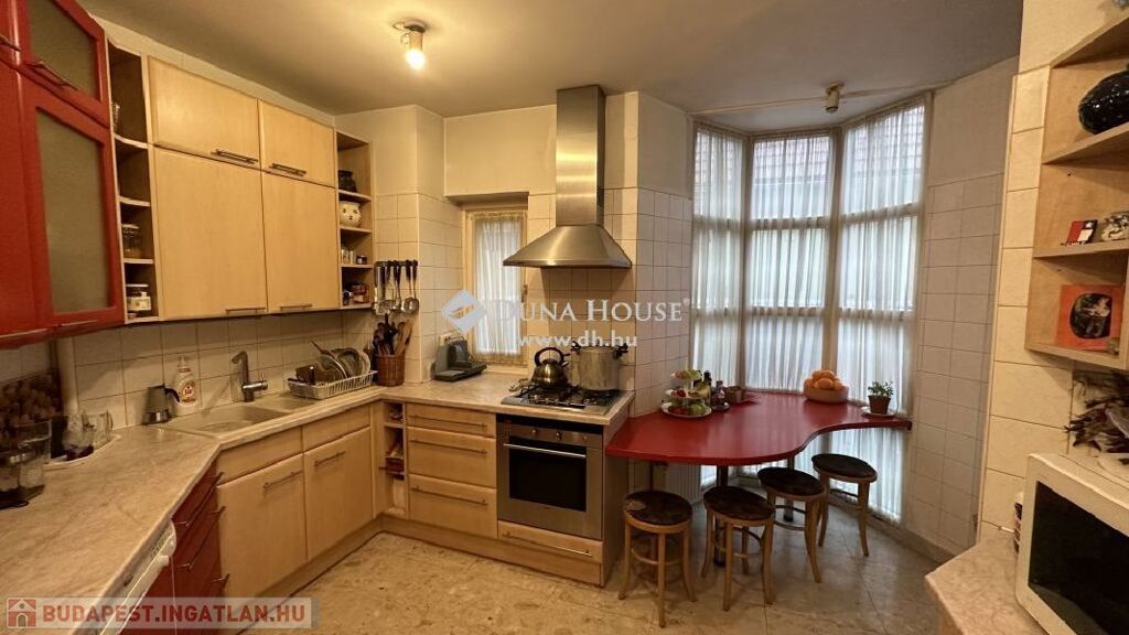 A II. kerületben Pesthidegkúton eladó egy 586 m2-es telken álló 286 m2 -es, 4 szintes,8 szobás, 3 fürdőszobás, nagy teraszos, 2 erkélyes, jó állapotú családi ház. Kiváló lehetőség nagyobb családok számára, több generáció együttélésére számára.A szintek mondhatni külön életterek, kis apartmanként funkcionálnak.Minden szoba külön nyíló!ÉPÜLET ÉS A TELEK JELLEMZŐI:A telek belterületi, szabályos négyszög alakú, felszíne sík, utcafrontja északi.Teljesen körbekerített, füvesített.Az ingatlan összközműves, minden közmű saját mérőórával rendelkezik.A ház az utcafronttól beljebb helyezkedik el.A ház 1997-ben épült, hagyományos építési technológiával.Alapozás: beton sávalapFüggőleges teherhordó szerkezet: tégla falazó elemVízszintes teherhordó szerkezet: monolit vasbeton födémTetőszerkezet: faszerkezetű, kontyolt nyeregtetőTetőfedés: beton Bramac cserépfedésKülső falfelület: dörzsölt vakolatBelső padlóburkolat: kerámia és parkettaFűtés és meleg vízellátás: házközponti rendszerű, gázkazánról működik.Nyílászárók külső: faszerkezetű, hő és hangszigetelt üvegezésselKülső és belső ajtók: faszerkezetű, festett kivitelbenA lakók és az épület biztonságát riasztó felügyeli.Az ingatlan per-teher és igénymentes.Az épület 4 szintes:igazán jó beosztású, szép, jó tágas terekkel rendelkező ingatlan- Alagsor:-. háztartási helyiség-. Kazánház-. Tároló-. Barkács helyiség-. közlekedő-. szerszám tároló 20 m2- Földszint:- Nappali -társalgó 56,2 m2- Étkező 18 m2- Konyha 9,1 m2- Vendégszoba 13 m2- Fürdő +WC 5,74 m2- Gardrób +kamra 4,08 m2- Előszoba 4,5 m2- Fedett terasz 20 m2- Emelet 1 szint:- Szoba 21,8 m2- Szoba 15,9 m2- Szoba 19,27 m2- Gardrób 6,08 m2- Fürdő +WC 12,16 m2- Társalgó 17,5 m2- WC 1,3 m3- Zuhanyzó 3,1 m2- Gardrób 1,85 m2- Erkély 12 m2- Emelet 2. szint tetőtéri:- Szoba 14,8 m2- Szoba 13,8 m2- Szoba 25,38 m2- Tároló3,2 m2- Fürdő +WC 6,9 m2- Közlekedő 9,5 m2- Erkély 12 m2- Gardrób 4,83A kert gondozott, kényelmesen lehet megközelíteni az épített kemencét is.A vételár részét képezi a gépesített konyhabútor, valamint a beépített szekrények.LAKÁS JELLEMZŐI:A ház bejáratán belépve az előtéren át egy igen tágas tér fogad minket, mivel egy légtérben található a Nappali-társalgó, és az étkező, kissé elválasztva a konyha (melynek használatát kamra is segíti). Minden szoba külön nyíló! A szintek mondhatni külön életterek, kis apartmanként funkcionálnak.A teret tágítják és napfényessé teszik a nagy tolóajtók / teraszajtók, amelyen át a teraszra illetve a kertbe juthatunk. Ezen a szinten is megtalálunk még egy hálószobát, valamint egy zuhanyzós fürdőszobát+ WC-t, és egy gardróbot is.Az emeletre a kényelmes lépcsőn juthatunk fel, ahol szintén tágas társalgó helyiség fogad minket. Ezen a szinten még 3 külön nyíló szoba, mindennel felszerelt fürdő +WC, és egy zuhanyzó és külön WC, valamint két gardróbszoba, és egy erkély került kialakításra.A tetőtéri szinten pedig, szintén 3 külön nyíló szoba, fürdőszoba +WC, tároló, gardrób és közlekedő, és egy erkély található.A ház alsó szintjét a kazánház, a háztartási helyiség, barkács helyiség és a tároló foglalja el.Az alagsori szinten van még egy szerszámtároló is.HÁZ MÉRETEI:A ház teljes területe 286 m2, amit növel a 20 m2 nagyságú kertkapcsolatos terasz., amely tavasztól - őszig kellemes pihenési lehetőséget biztosít a család számára.PARKOLÁS:A parkolás a ház előtti felszíni autóbeállóval jelenleg 2 autó számára megoldott, további autók parkolására van lehetőség a telek bejárata előtt az utcán.INGATLAN HELYSZÍNE:Az ingatlan Budán, a II. kerület Pesthidegkút-Ófalu városrészen, családi házas, csendes övezetben épült, szilárd burkolatú úton jól megközelíthető, de nyugodt környék, infrastruktúrával jól ellátott.Gépkocsival hamar elérhetjük Budakeszi, Solymár bevásárló- és szórakozási, kirándulási lehetőségeket kínáló helyeit, pár percre a Francia Iskola.A Széphalom Bevásárló központ, a Stop Shopnak percek alatt elérhető. Sétatávolságra iskola, óvoda megtalálható.A tömegközlekedést használókat több buszjárat segíti, a Solymárra menő 64-es, 164-es és 264-es buszokon kívül mind az 57-es és a 257-es körjáratok is jól elérhetőek.A hűvösvölgyi végállomásról mind a Széll Kálmán tér, mind a Móricz Zsigmond körtér, de akár Óbuda központja is gyorsan, átszállás nélkül megközelíthető.Éjszakai járattal (956-os, 964-es) akár a Belvárosból is egyenesen hazaérhetünk.A környéken sok a kirándulóhely, kellemes jó nyugodt, csendes kertvárosi környezet!Érdeklődésével és megtekintési szándékával várom megtisztelő hívását!