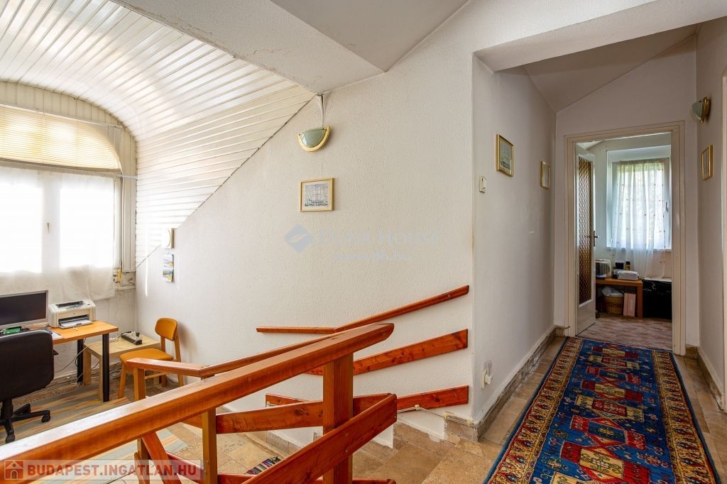 Eladó egy pazar környezetben lévő, felújítást igénylő, kétgenerációs 290m2-es családi otthon a II/A kerületben. Amely ideális választás lehet a nyugodt, csendes, kertvárosi életet kedvelők számára. Az ingatlan egy csendes, zöldövezeti utcában helyezkedik el. Az épület tervezésénél figyelembe vették a praktikus, és élhető tereket, ami a teljes kényelmet szolgálja az itt élők számára. A ház különlegessége az elszeparált két lakrész, és a romantikus kert, amelyben hatalmas fenyőfák találhatók. A teraszról csodálatos panoráma tárul elénk..Távirányításu kapun keresztül érkezünk meg a kertbe, és állhatunk be a dupla garázsba. A garázs mérete ideális, 1 állásos, szerelőaknás. A garázsból a ház alagsorába léphetünk, ahol korábban ostyasütő műhely működött. Az alagsor több helységből áll. Műhely, fürdőszoba, (ami most mosókonyhaként üzemel) egy vendégszoba, hatalmas kamra, kazánház, és egy kissebb szoba( tároló).Az alsó szinten található a nappali, a 2 konyha-étkező és egy vendégszoba saját fürdővel, nappalival, terasszal valamint a külön WC. A házat körbeépítették teraszokkal. Teraszra léphetünk a nappaliból, a vendégszobából, a konyhából, és az étkezőből is, ahol egy nagyobb, kertbenyúló, fedett külső étkező található.Amely ideális az ebéd utáni ejtőzésre, kikapcsolódásra. Az emeleten is található egy nagy méretű erkély, ahol élvezhetjük a kert nyújtotta nyugalmat, és szépséget.A második szintre felérve található négy szoba, közülük az egyik gardróbszoba. Ezen a szinten is található egy erkély, amely a szülői hálóból nyíló gardróbszobából nyílik. A szobák tágasak és kellemes légkört teremtenek. Ezen a szinten továbbá találunk 1 fürdőszobát is. A szobák méretüknél fogva tökéletesen bútorozhatóak. Minden helyiség különbejáratú, a szobák nem nyílnak egymásba.Az ingatlan elhelyezkedése kiváló, közel található a Francia és Amerikai iskolához, így ideális választás lehet olyan családoknak, akiknek fontos a közelben lévő oktatási intézmények elérése. A környék nyugodt és családbarát, így ideális otthona lehet egy harmonikus életet kereső családnak, vagy nagycsaládoknak.Kérem vegye fel velem a kapcsolatot! Ügyfeleink számára mindig nyitottak vagyunk, és szívesen válaszolunk minden kérdésre, amely felmerülhet az ingatlan vásárlásával kapcsolatban..-1979. építés- Telek 721m2-1994. teljes szigetelést kapott a tető, és az épűlet kivűről, 12cm- 3 rétegű hőszigetelt nyílászárok- redőnyök- szunyogháló- 3 fázis- 2023. Új kazán Saunier Duval - Bramac tetőcserép- fútés, melegvíz gáz, de van külön villanybojler is