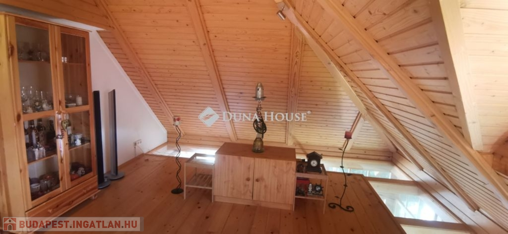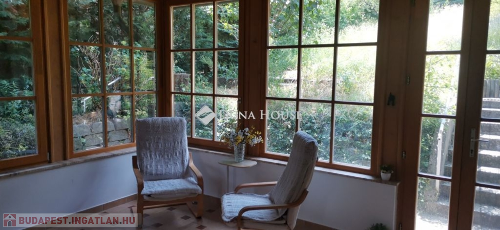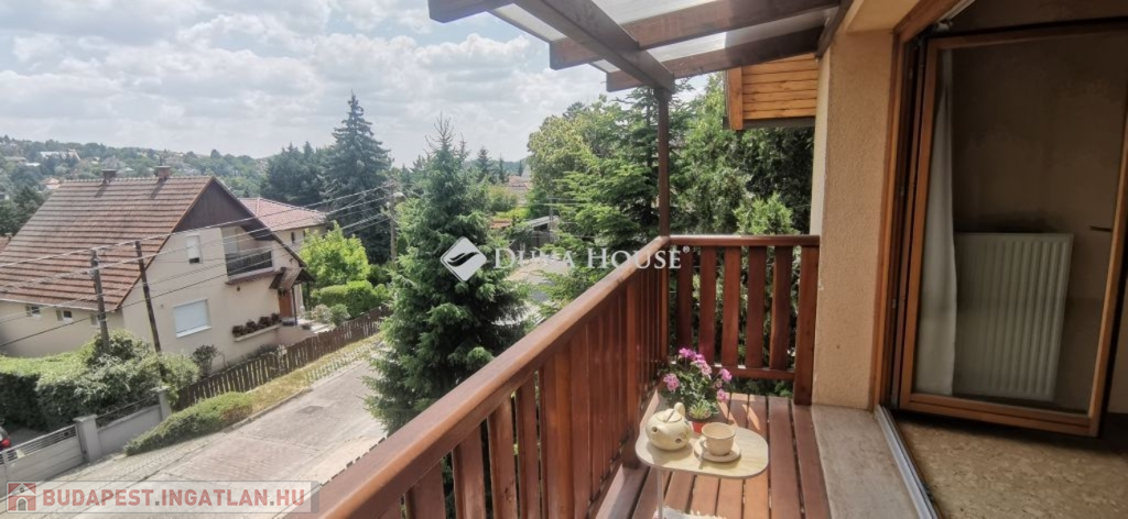 A felső szinten ezen kívül egy kisebb szoba, gyerekszoba található, melllette zuhanyzós fürdőszoba wc-vel és a hálószoba a teljes faltól-falig tartó diófa terasszal! Erről a fedett teraszról is lenyűgöző, örökpanorámás kilátás nyílik a budai hegyekre, amelyet a teljes szélességében eltolható nyílászárókkal élvezhetünk maximálisan.