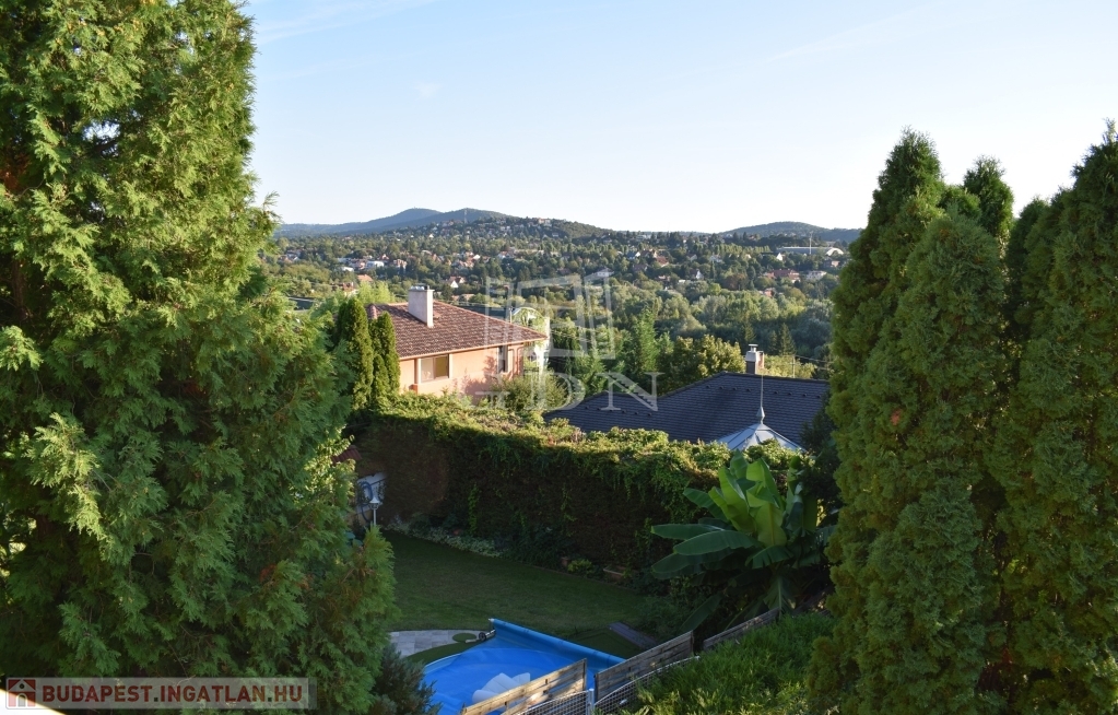 II. kerületben, Pesthidegkút-Ófalu részén domboldalon, kertvárosi csendes környezetben, igényes ingatlanok szomszédságában, nettó 275 m2 lakóterületű, K-D-NY tájolású, jelenleg 2 GENERÁCIÓS, 5 + 1 szobás, MEDENCÉS, jó állapotú ikerházat, saját kizárólagos 580 m2 nagyon szépen parkosított telken kínálunk eladásra.