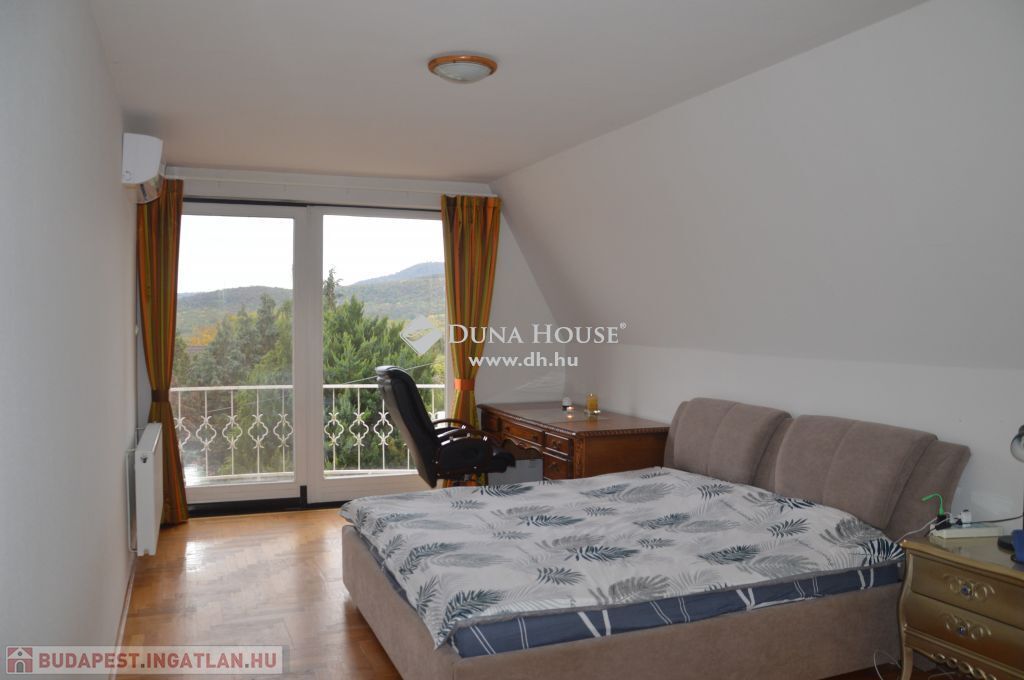Eladó bútorozott családi ház, kertkapcsolattalEladó Remetekertvárosban egy 800 nm-es önálló telken lévő 3 szintes családi ház, részben bútorozva.Az alagsori szinten elektromos ajtóval nyíló 2 állásos garázs, tárolók, mosókonyha és kazánház található, ahonnan közvetlen lépcső visz fel a lakótérbe.A földszinten egy hatalmas, 55 nm-es nappali étkező, kandallóval, légkondicionálóval, hatalmas ablakfelületekkel és csodálatos panorámával a Széchenyi hegyre. Ezen a szinten került kialakításra a konyha, egy fürdőszoba sarokkáddal és dupla mosdóval, illetve van egy külön vendég WC is.Az emeleten 3 nagyméretű hálószoba légkondicionálóval, csodálatos panorámával és terasszal és egy fürdőszoba is kialakításra került.A ház építészetileg különleges, sok egyedi megoldással, ami különleges hangulatúvá teszi az otthont.A kert parkosított, locsolórendszerrel. A kert egy részén konyhakert lett kialakítva.A házra 3 éve napelemes rendszer került, ami a teljes villanyfogyasztást fedezi egész évben.A gáz havi átalány díja igen kedvező, 27.000 HUF, ami a padlófűtésnek és a benapozottságnak köszönhető.Télen a hangulatról és a kellemes melegről a nappaliban kandalló gondoskodik.Mind a teraszokról, mind a nappaliból csodálatos, egyedülálló panoráma a Széchenyi hegyre.