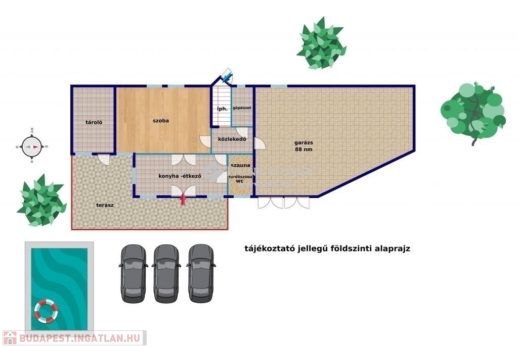 Ezen a szinten van a minimum 3 autónak elegendő garázs is.