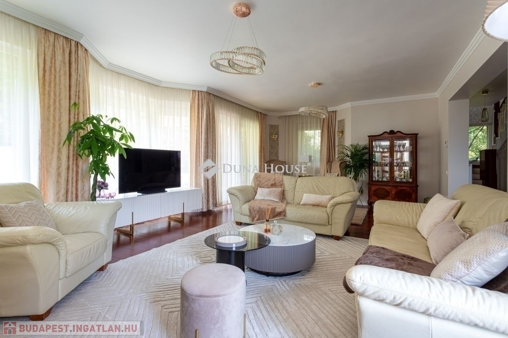 Exkluzív családi otthon Budaligeten panorámával és prémium minőséggelBudaliget egyik legnívósabb részén, a francia iskola közelében kínálunk eladásra egy páratlan adottságokkal rendelkező, minden igényt kielégítő családi házat.Az ingatlan csendes, zöldövezeti környezetben, erdő mellett helyezkedik el, ahonnan lenyűgöző panoráma nyílik a környező hegyekre. A gondosan megtervezett elrendezésnek és a hatalmas üvegfelületeknek köszönhetően a ház minden szeglete világos, tágas és otthonos.Főbb jellemzők:- nappali + amerikai konyha közvetlen kertkapcsolattal- 6 hálószoba, 4 fürdőszoba, több gardrób- vendégszoba, dolgozó vagy külön lakrész kialakításának lehetősége- alsó szint külön bejárattal ideális vállalkozásra vagy kétgenerációs megoldásra- minőségi burkolatok és prémium anyagok mindenholExtra felszereltség:- kondenzációs gázkazán, kandalló, Daikin klíma- elektromos redőny, szúnyogháló, biztonsági bejárati ajtók- riasztórendszer, automata garázskapu és kertkapu- fedett és nyitott kocsibeálló, garázs- gondozott kert automata öntözőrendszerrelEz az ingatlan tökéletes választás mindazoknak, akik szeretnének egy exkluzív, mégis nyugodt környezetben élni, miközben élvezhetik Budapest egyik legszebb városrészének minden előnyét.