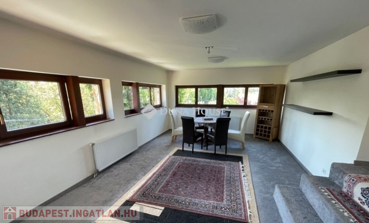 Budapesten a II. kerületben, Hűvösvölgyben, Erzsébetligeten eladásra kínálok csodás panorámával többgenerációs, három szintes családi házat. Gyönyörű ősfás környezetben, csend és a nyugalom szigete, sarok telken szépen gondozott kerttel. A telek 835 m², rajta 367 m² ház található. A ház mellett egy 24 m² garázs és három autó számára fedett beálló lett kialakítva. Igényes kert és az udvar ahol esővíztároló, és víztisztító lett telepítve, automata öntözőrendszerrel. Az egész házra jellemző a nagy tágas világos terek.Földszinten előszoba padlófűtéssel fogadja az érkezőket majd a hatalmas nappaliba és étkezőbe jutunk. A nappali hangulatát a téli estéken kandalló biztosítja. Nyáron a nagy terasz nyújt kellemes pihenést. A nappaliból a vendég szobába érkezünk ahol zuhanyzó található, ezen a szinten még mosdó és toalett van kialakítva.Szintén a földszinten egy tágas konyha szolgája a házban élők kényelmét.Az emelet központi része az igényesen, modern gépekkel berendezett konyha, étkező pulttal és nappali nagy erkéllyel. Három nagy szoba található ezen a szinten. Egy szülői háló melyben dolgozó szoba és fürdőszoba lett kialakítva. Két különbejáratú szobát és egy gardróbot is találunk az első emeleten. Szobákhoz klíma berendezés tartozik, ezen a szinten egy külön álló fürdőszoba található WC-vel.A tetőtérben három nagy szoba várja lakóit. A legnagyobb szoba alkalmas konyha és fürdőszoba kialakítására is.Közelben található: magánóvoda, Francia iskola, Gyarmati Dezső uszoda, teniszpálya, Tesco, Auchan.10 perc nyire Széphalom bevásárlóközpont, gyógyszertár, Lovas cukrászda, Pepco.Másik irányba: szintén 5-10 percnyi távolságra HŰVI szolgáltatóház, posta, pékség, kávézó, kondi terem, Lidli, DM.5 buszmegálló távolságra található Hűvösvölgy központja.Szívből ajánlom mindenkinek, több generációs családoknak, befektetőknek és mindenkinek akinek fontos a szép környezet a természet közelsége a Jó levegő és megbízható szomszédok.Várom megtisztelő hívásokat.