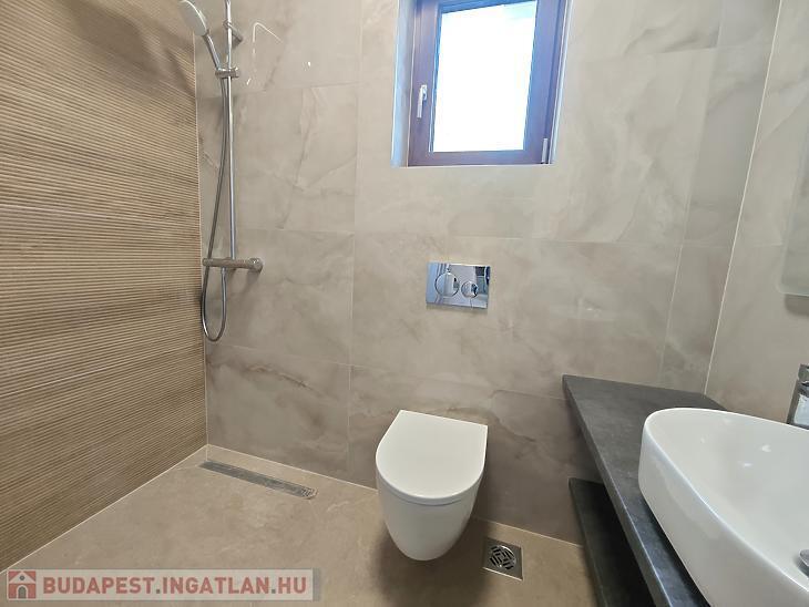 A háromrétegű hőszigetelt nyílászárók, alumínium küszöbökkel és párkányokkal, valamint a motoros, színezett alumínium redőnyök biztosítják az energiahatékonyságot és a kényelmet. A garázsban Hörmann szigetelt, motoros szekcionált garázskapu került beépítésre.