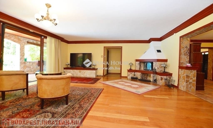 Budaligeten eladó egy nappali + 5 szobás, mediterrán stílusú, medencés családi ház.