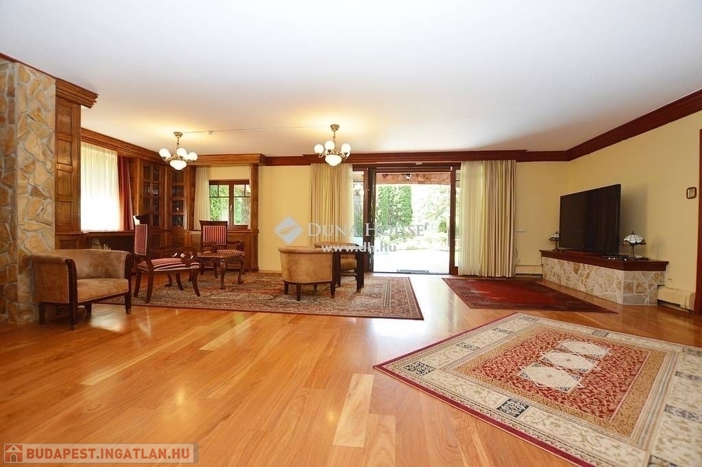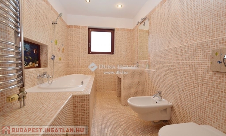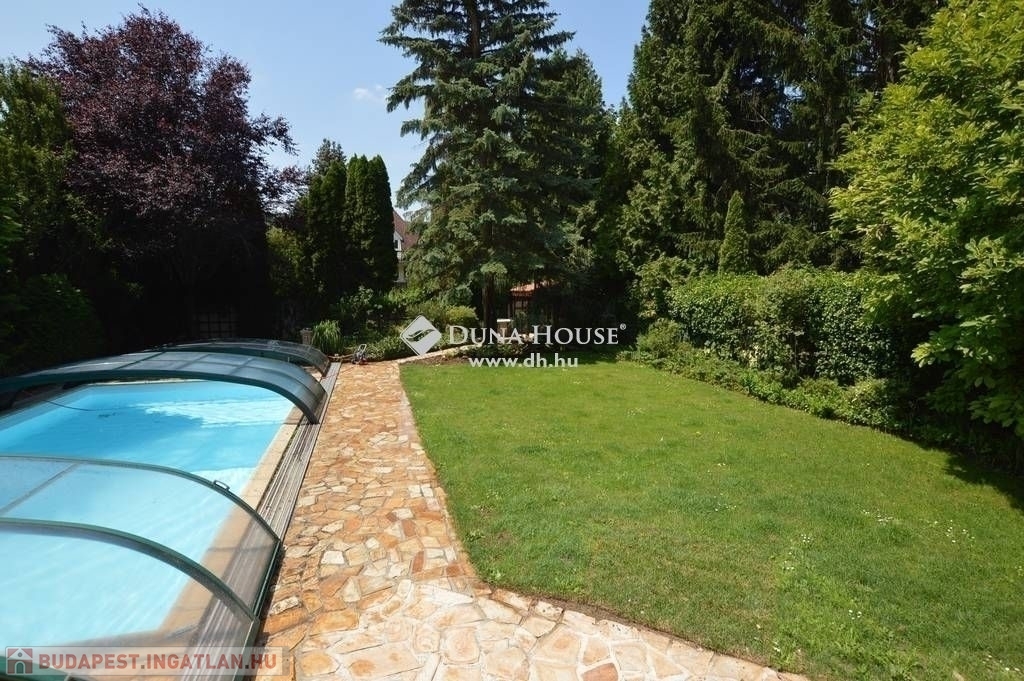 Budaligeten nappali + 5 szobás , mediterrán stílusú , medencés családi ház eladó .A ház nagyon szép állapotban van, minőség, örök elegancia jellemzi külső és belső megjelenésében is! A földszinti részen közvetlen kertkapcsolatos tágas, kandallós nappali került kialakításra, mellette a konyha, kamrával, háztartási helyiség-gardrob, fürdő. Az emeleti szinten a szülői hálóhoz közvetlenül kapcsolódik a tágas fürdőszoba, továbbá itt vannak a gyermekszobák, vendégszoba, dolgozó és külön fürdőszoba. Kedvező rezsi, harmonikus otthon!Riasztóberendezések, kamerarendszer is kiépítésre került. Fűtési renszere távvezérlési lehetőséggel ellátott. A garázs mellett 2 autó beállására is van lehetőség, továbbá a ház előtt is kiépített parkoló fogadja a látogatókat.Az ingatlan kertjének elrendezését úgy alakították ki, , hogy az akár a nappali kényelmét nyújtsa az egész család számára,de mindezt a szabadban – megőrizve a szabadtér által kínált páratlan lehetőségeket. Fedett, fűtött kerti medence, grillező pavilon használata kikapcsolódást nyújt a család, baráti társaságok... részére. Elhelyezkedése kiváló, csendes madárcsicsergős környezetben van, mégis a tömegközlekedés néhány perces gyalogostávolságra található. Oktatási intézmények, nemzetközi iskolák / francia, amerikai / , bevásárlási lehetőségek a közelben.Ezt a házat látni kell, ebbe minden kedves látogató csak beleszeretni tud! Várom szíves hívásukat!