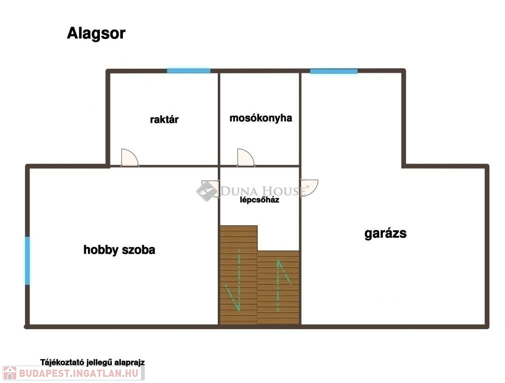 Az alagsori részen található a tágas garázs, több tároló helyiség, egy hobby szoba és a mosókonyha.