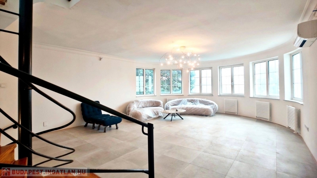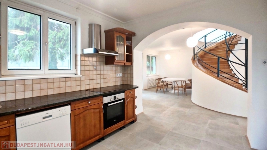 II/A kerületben, Remetevárosban eladó egy az 1990-es években épült, 320 m2-es, felújított családi ház, mely egy 1128 m2-es telken helyezkedik el. Az ingatlan nagy teraszos, panorámás, 5 szobás, 3 fürdőszobás, a garázs szinttel együtt 3 szintes. A fűtést gázcirkó készülék biztosítja, a ház hűtő-fűtő klímával felszerelt. Az ingatlan tehermentes.