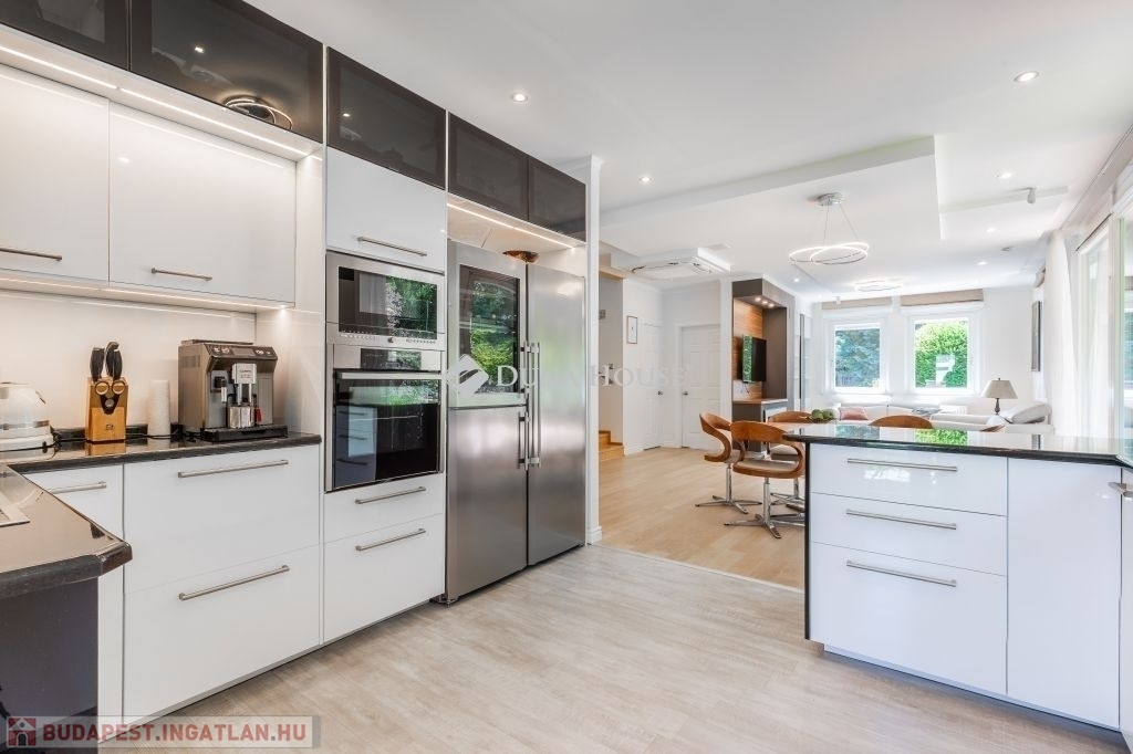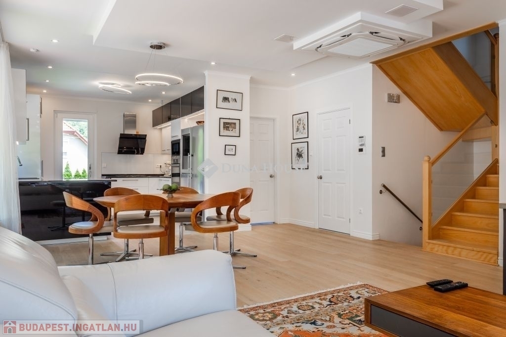 Kivételes lehetőség egy prémium kategóriás otthonra vágyóknak!Eladó ízlésesen felújított, 3 szintes ikerház medencével és hatalmas terasszal!Ez a 241 m²-es, háromszintes ikerház ideális választás akár két generáció együttélésére is tágas terei, külön beosztható szintjei és gondosan megtervezett belső elrendezése révén.Főbb jellemzők:Nappali + 6 hálószoba - 3 fürdőszoba rengeteg tér családnak, munkának vagy vendégeknek3 szint jól elkülöníthető életterek, ideális nagycsaládosoknak vagy két generációnakHatalmas terasz tökéletes helyszín reggeli kávézáshoz vagy esti grillezésekhez barátokkalGyönyörű, parkosított kert zöld oázis a város szélénSaját medence a nyári hónapok kihagyhatatlan kényelmeJakuzzi és szauna otthoni wellness minden napÍzlésesen felújított, minőségi anyagokkal azonnal költözhető állapot Kiváló elhelyezkedés tömegközlekedés pár lépésre, iskolák , óvodák a közelben, mégis nyugodt, kertvárosi környezet.Ez az ingatlan ideális választás azoknak, akik kompromisszumok nélküli, magas színvonalú otthonra vágynak legyen szó akár családi fészekről, akár hosszú távú befektetésről. Ne maradjon le róla! Tekintse meg személyesen, és győződjön meg a kivételes hangulatról és a praktikus elrendezésről!Várom hívását!