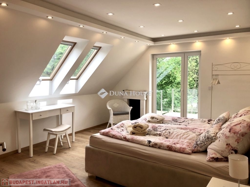 Eladó Budaligeten (Budapest 2A) gyönyörű fás környezetben nagy telken (1083 m2) álló két szintes összesen bruttó 370 m2 -es családi ház.Az ingatlan a Budapesti Gustave Eiffel Francia Általános Altalános Iskola és Gimnázium közvetlen közelében található, mely francia tantervet követ, tanulói elsősorban francia / magyar állampolgárságú diákok, de igen jelentős a más nemzetekhez tartozó diákok száma is. Szintén innen már közel az American International School of Budapest, mely helyileg Nagykovácsiban, 10 perc autózásra, található.A ház 2018-ban egy teljeskörű felújításon esett át, modern, kiválóan hőszigetelő nyílászárókkal és falakkal rendelkezik. Az ingatlan egy teljesen bekerített telken található, elektromos bejárati kapuval, mely privát szférát / intimitást és biztonságot nyújt. A meleget az egész házban modern padlófűtés biztosítja. A közvetlen kertkapcsolattal rendelkező földszinti lakás tágas nappali-étkezőből, jól felszerelt (Nolte) konyhából és beépített szekrényekből, 3 hálószobából, 2 fürdőszobából, háztartási helyiségből és egy nagy fedett teraszból áll.A felső emeleten egy fényárban úszó nagy nappali fogad - étkezővel, tetőablakokkal és dekoratív tetőgerendákkal ellátott magas helyiségekkel, egy jól felszerelt Nolte konyhával, 3 tágas hálószobával, 2 fürdőszobával, 2 nagy erkéllyel és egy fa laminált padlóval burkolt félemelettel rendelkezik , amelyhez már csak egy lépcső vagy létra feljáró szükséges. Minden szoba modern Daikin klímaberendezéssel van ellátva.A házhoz egy nagy, gyönyörűen parkosított kert tartozik öntözőrendszerrel, kerti pavilonnal és egy pincével, ahol két állású garázs található.A ház jelenleg két különálló lakóegységre van osztva, azonban egy kisebb átalakítással könnyedén összenyitható. Az ingatlan jelenlegi állapotában is sokféle hasznosításra alkalmas: ideális kétgenerációs otthonnak, egyik lakás hosszú vagy rövid távú kiadásával pedig rendszeres jövedelemforrás biztosítható, miközben a másikban kényelmesen élhet a tulajdonos. Az egységek összekapcsolásával pedig egy család számára tágas, világos és jól kihasználható élettér alakítható ki.Ne hagyja ki ezt a hihetetlen lehetőséget, és hívjon megtekintésért vagy további információkért.