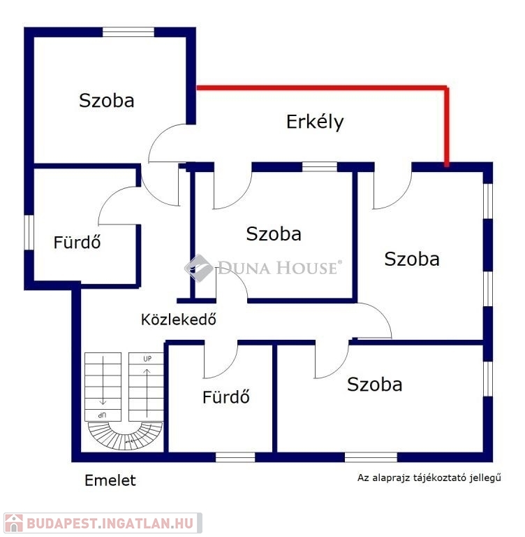 Az emeleten további négy hálószobát találunk két fürdőszobával és egy kert felé néző nagy erkéllyel. Minden hálószoba 13 nm felett van, így kényelmes élhető lakótereket biztosít. Egy szoba kivételével minden szoba légkondicionált !