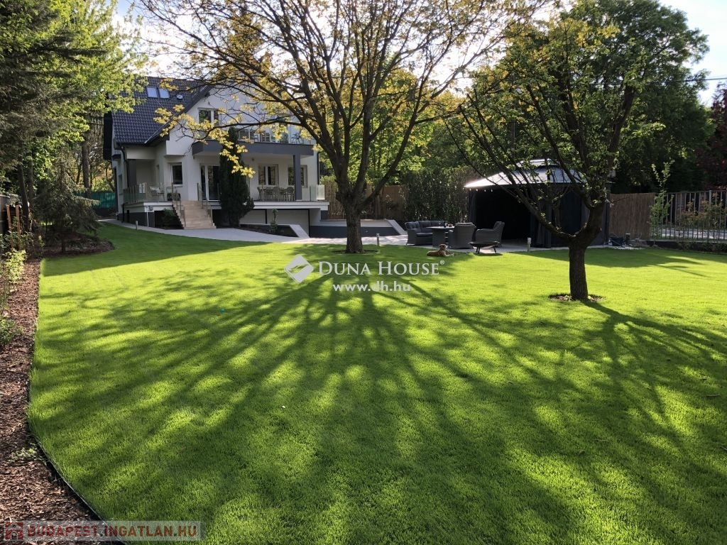 Eladó Budaligeten (Budapest 2A) gyönyörű fás környezetben nagy telken (1083 m2) álló két szintes családi ház. A ház két szintjé két teljesen különálló lakóegységből áll, melyek önállő közüzemi mérőkkel is rendelkeznek. Lehetőség adódik szintenként rövid illetve hosszú távú bérbeadásra, de akár kétgenerációs otthonként is ideális választás.Az ingatlan a Budapesti Gustave Eiffel Francia Általános Altalános Iskola és Gimzázium közvetlen közelében található, mely francia tantervet követ, tanulói elsősorban francia állampolgárságú diákok, de igen jelentős a magyar és más nemzetekhez tartozó diákok száma is.Ez a modern és teljesen berendezett nagy ház 2 különálló lakóegységgel, egy teljesen bekerített telken található, elektromos bejárati kapuval, mely *privát szférát / intimitást és biztonságot nyújt. A közvetlen kertkapcsolattal rendelkező nagyvonalú földszinti lakás tágas nappali-étkezőből, jól felszerelt márkás konyhából és beépített szekrényekből, 3 hálószobából, 2 fürdőszobából, háztartási helyiségből és egy nagy fedett teraszból áll. A felszerelt, kiváló minőségű Nolte márkájú konyha kiváló állapotban van.A házhoz egy nagy, gyönyörűen parkosított kert tartozik öntözőrendszerrel, kerti pavilonnal és egy pincével, ahol két mélygarázs található. Az épületet 2018-ban teljesen felújították.A legfelső emeleten lévő lakás külön bejáraton keresztül érhető el, és egy fényárban úszó nagy nappali - étkezővel, tetőablakokkal és dekoratív tetőgerendákkal ellátott magas helyiségekkel, egy jól felszerelt márkás konyhával, 3 tágas hálószobával, 2 fürdőszobával, 2 nagy erkéllyel és egy fa laminált padlóval burkolt félemelettel rendelkezik , amelyhez már csak egy lépcső vagy létra feljáró szükséges. Minden szoba modern Daikin klímaberendezéssel van ellátva. A kiváló minőségű Nolte márkájú beépített konyha kiváló állapotban van.A telek mérete és az ingatlan elhelyezkedése a telken belül akár a telek megosztását is lehetővé teszi.Ne hagyja ki ezt a hihetetlen lehetőséget, és hívjon megtekintésért vagy további információkért.