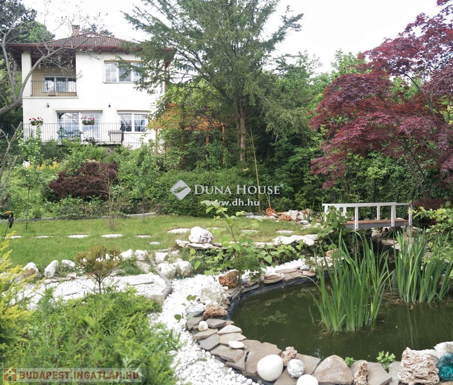 Eladó 2009-ben épült családi ház, gyönyörű panorámával, közel a Francia iskolához! A ház 908 m2-es telken helyezkedik el, jó elosztású, 2 nappali és 5 hálószoba található benne, valamint több tároló, mosókonyha, gardrób, a hálószobák külön nyílnak, így a nyugodt elvonulási is megoldott.Az egyik nappaliban külön konyha is kialakítható, ha több generáció szeretne együtt élni.Tágas amerikai konyhás nappalija rendkívül világos, 3 fürdőszobája egyikében szauna került elhelyezésre.A fűtést modern gázkazán és padlófűtés is biztosítja! A rezsi kedvező!A terek jól kihasználtak, a ház kényelmes nagyobb család számára is, családi rendezvények helyszíne lehet a 28m2-es terasz! Innen jutunk le a gondozott kertbe, mely zegzugos és egy halastó is található benne. A panoráma egyszerűen gyönyörű!A híres Náncsi néni vendéglő és számos nemzetközi iskola a közelben található, autóval 5 percre van a Francia Nemzetközi Iskolától, 8 percre az Amerikai Nemzetközi Iskolától, az Amerikai Egyházi Iskolától és a Spanyol Nemzetközi Iskolától.Néhány perc alatt a Hűvösvölgyi végállomáshoz juthatunk.A ház közelében sok bevásárló szupermarket található, TESCO, LIDL, SPAR, nagyon kényelmes a vásárlás.