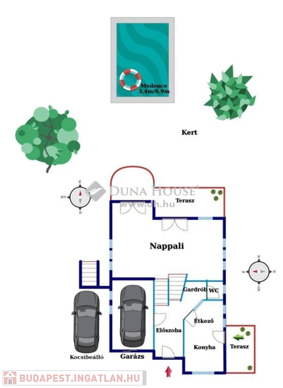 Zöld oázisban élni a 2A kerületben!For English and German please scroll down!Eladó egy gondozott, családi ház 932 nm-es telken, 330 nm-es lakóterületen. 3 szinten összesen 4 hálószoba, 2 fürdőszoba, nappali (kandallóval), konyha, szauna, fitnesz vagy szabadidő szoba, valamint több tárolóhelyiség található, melyek irodaként vagy vendégszobaként is használhatóak. A nappalihoz és a konyhához terasz tartozik.A házhoz garázs és fedett parkoló is tartozik.A parkosított kertben egy úszómedence található, melyet egy buja, zöld növényekkel teli kert vesz körül.A környék rendkívül csendes, az utcát kizárólag a helybéli lakók használják. A környéken remek bevásárlási lehetőségek, iskola, óvoda, és számos szabadidős lehetőség található. Egy nyilvános sportuszoda, játszótér, focipálya és sportolási lehetőségek mindössze pár perces autóútra vannak. A környéken több étterem kínál gasztronómiai élvezeteket.Talán felkeltettük érdeklődését, és szeretné megtekinteni ezt a gyönyörű ingatlant?---------------------------------------------------------------------------------------------------------------------------------------------------------------------------------------------------------------------Living in a green oasis in the 2A district!A well-maintained family house for sale on a 932 square meter plot, with 330 square meters of living space. The house is spread over 3 levels, with a total of 4 bedrooms, 2 bathrooms, a living room (with fireplace), kitchen, sauna, fitness or leisure room, and several storage rooms, which can also be used as an office or guest room. There is a terrace in front of the living room and kitchen.A garage and covered parking are available.The swimming pool is located in the park-like garden, which is surrounded by lush landscaping.The neighborhood is very quiet, with the street being used only by residents. There are excellent shopping opportunities nearby, as well as a school, kindergarten, and a variety of leisure activities. A public sports swimming pool , a great playground, a soccer field, and sports facilities are just a few minutes drive away. The area is also home to many restaurants offering gastronomic delights.Perhaps we have piqued your interest, and we would be happy to show you this beautiful property?---------------------------------------------------------------------------------------------------------------------------------------------------------------------------------------------------------------------Leben in einer grünen Oase im 2. Bezirk!Ein gepflegtes Einfamilienhaus zum Verkauf auf einem 932 Quadratmeter großen Grundstück, mit einer Wohnfläche von 330 Quadratmetern. Das Haus erstreckt sich über 3 Ebenen und bietet insgesamt 4 Schlafzimmer, 2 Badezimmer, ein Wohnzimmer (mit Kamin), eine Küche, eine Sauna, ein Fitness- oder Freizeitraum sowie mehrere Lagerräume, die auch als Büro oder Gästezimmer genutzt werden können. Es gibt eine Terrasse vor dem Wohnzimmer und der Küche.Ein Garagenplatz und überdachte Parkmöglichkeiten sind vorhanden.Der Swimmingpool befindet sich im parkähnlichen Garten, der von einer üppigen, landschaftlich gestalteten Gartenanlage umgeben ist.Die Umgebung ist sehr ruhig, die Straße wird nur von den Anwohnern genutzt. In der Nähe gibt es gute Einkaufsmöglichkeiten, sowie eine Schule, einen Kindergarten und zahlreiche Freizeitmöglichkeiten. Ein großes öffentliches Sportschwimmbad, ein toller Spielplatz, ein Fußballplatz und Sporteinrichtungen sind nur wenige Minuten mit dem Auto entfernt. In der Gegend befinden sich auch viele Restaurants, die gastronomische Genüsse bieten.Vielleicht haben wir Ihr Interesse geweckt und würden Ihnen gerne dieses schöne Anwesen zeigen?