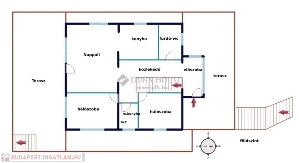 A 116 m2-es földszinten előszoba, 2 fürdő-wc, 2 hálószoba és a hatalmas nappali-konyha terasz kapcsolattal található. A nappalival kapcsolatos terasz közel 50 m2-es.