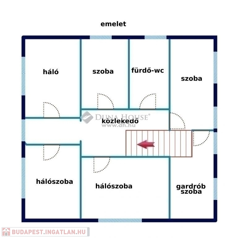 Az emeleten, ami br. 110 m2, 5 hálószoba, gardrób szoba és egy fürdő lett kialakítva.