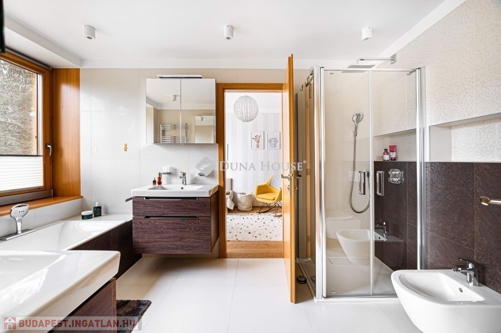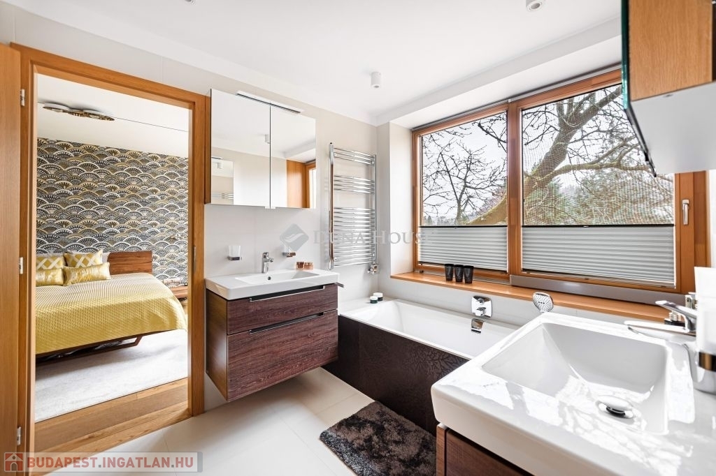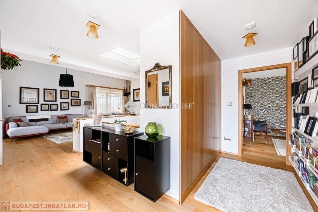 Eladásra kínálunk egy különleges karakterű, belső kétszintes családi házat, amely a kortárs luxus, az időtálló építészeti minőség és a magas szintű műszaki megoldások tökéletes egyensúlyát képviseli.