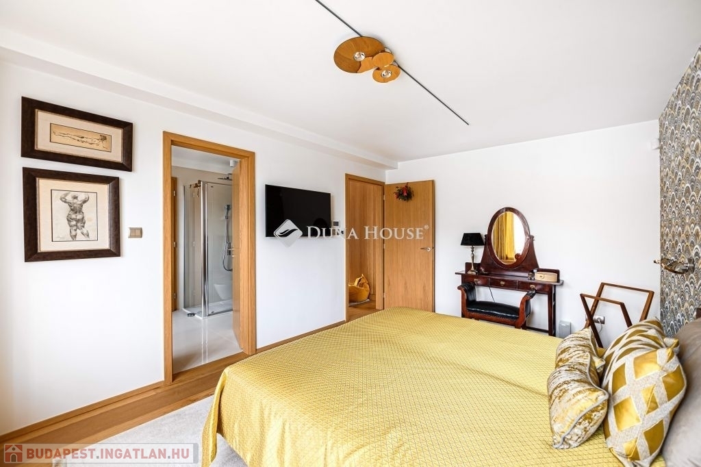 tágas, 3,15 m belmagasságú nappaliétkező, közvetlen teraszkapcsolattal; modern konyha kamrával; hálószoba; fürdőszoba; külön WC; gardrób/dolgozó és elegáns belső lépcső .