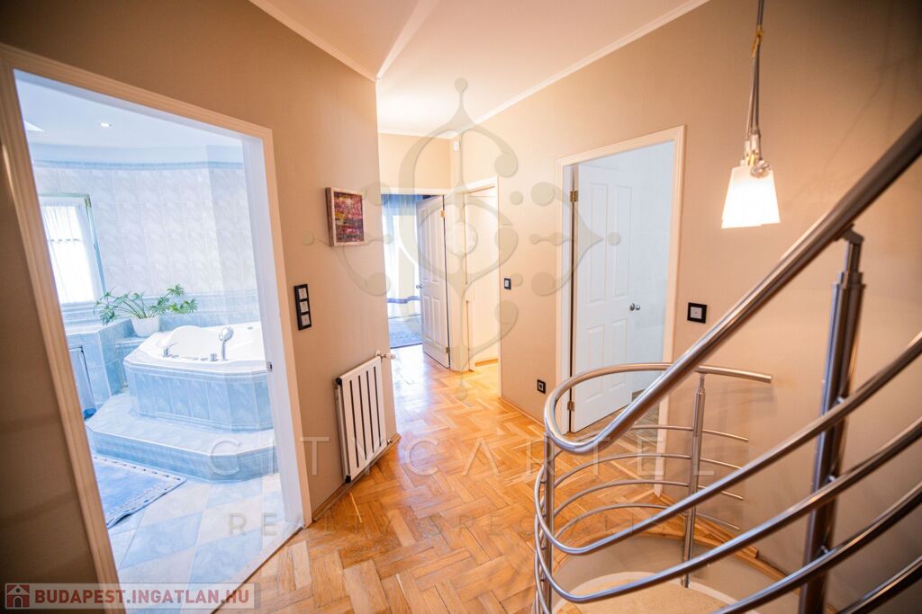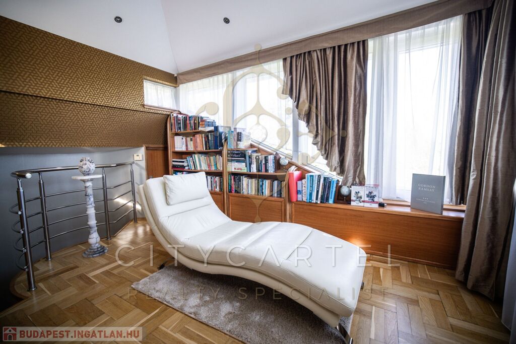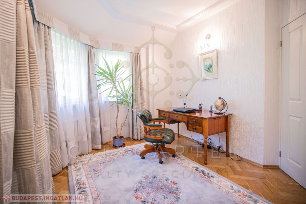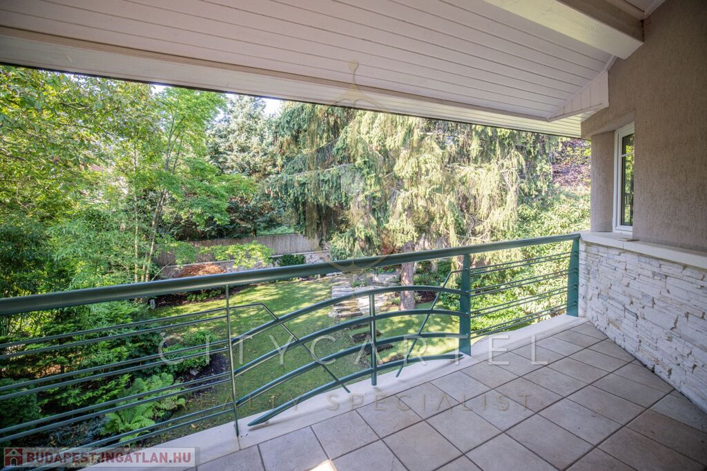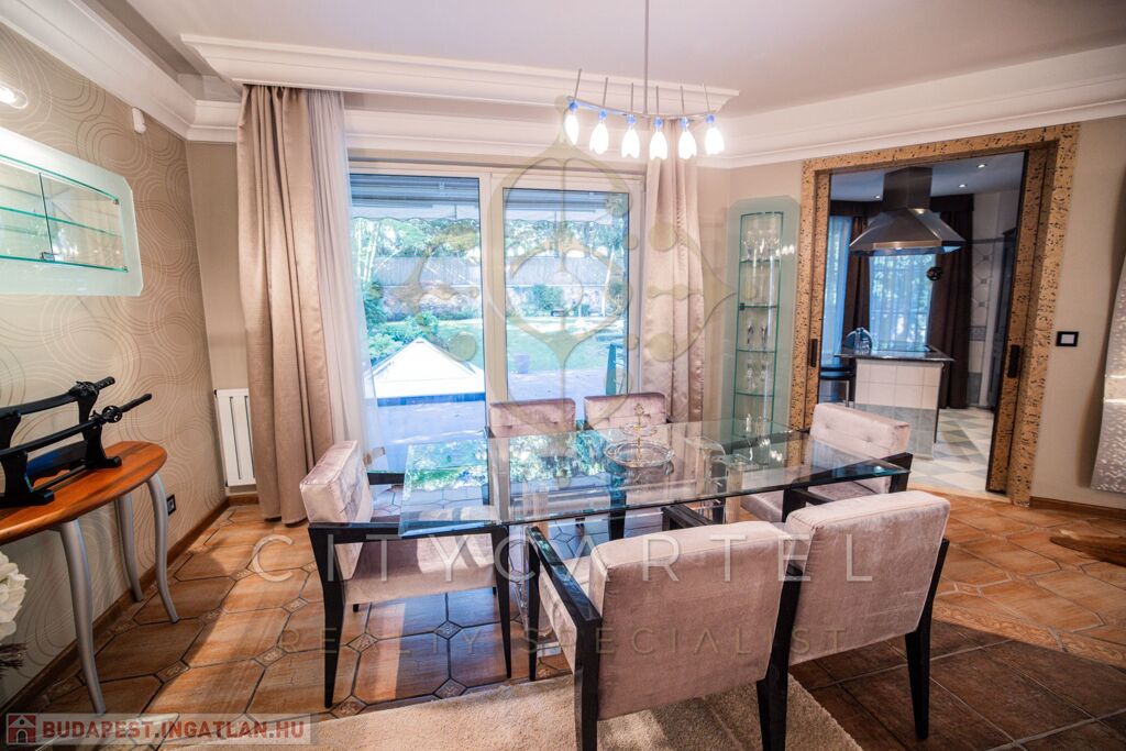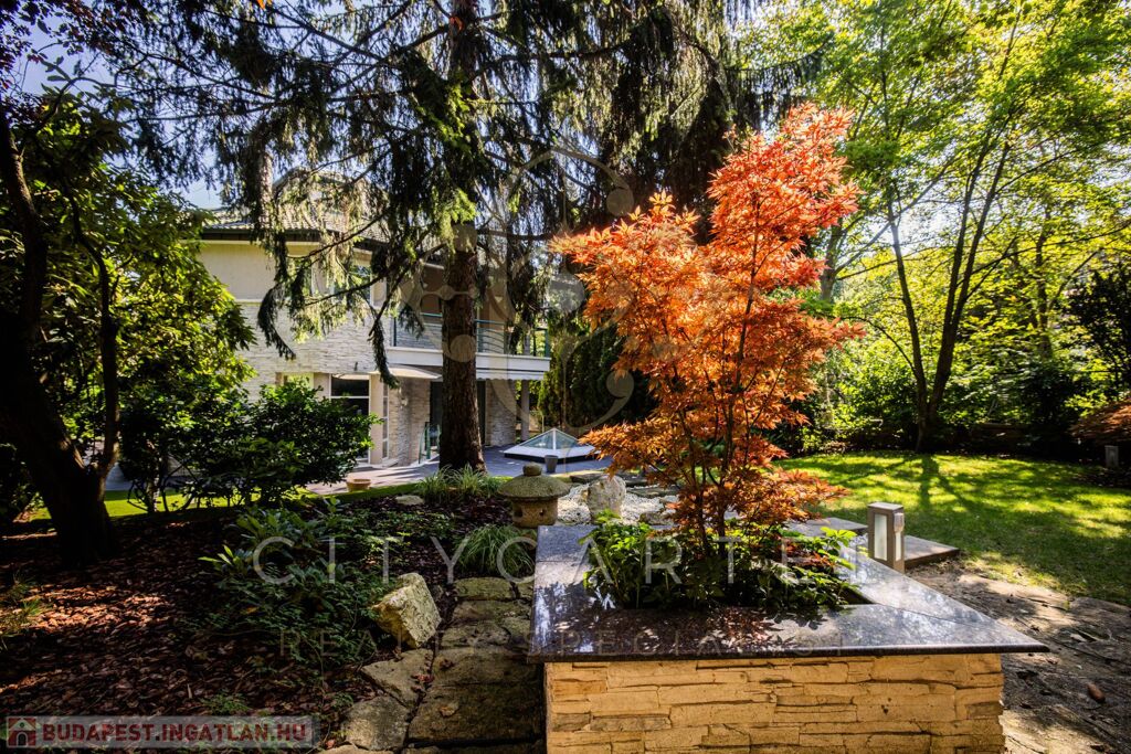 Budapest közkedvelt részén, a II. kerületében, Adyligeten, csodálatos természetközeli környezetben, családias, kertvárosi, zöldövezeti részen kivételes adottságokkal rendelkező, kifogástalan kivitelezésű és állapotú, DK-i tájolású, exkluzívan BERENDEZETT 300 nm-es, nappali + 4 szobás, újszerű családi ház, 609 nm-es telken, gondozott, gyönyörű kerttel, benne japán kerttel – a design, a minőség és a természetközelség harmonikus ötvözete.