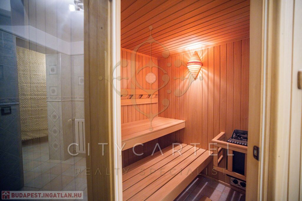 Szauna és felülvilágítós természetes fénnyel rendelkező sportszoba külön kertkapcsolattal (akár külön bejáratú, elszeparált irodává is alakítható)