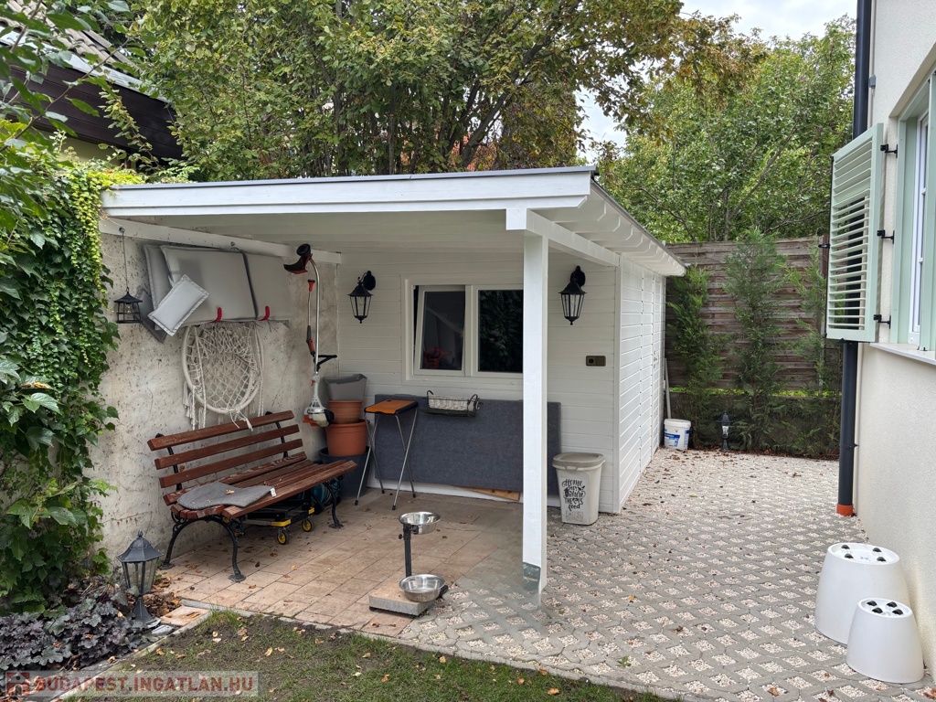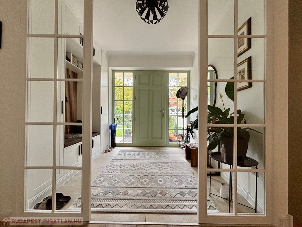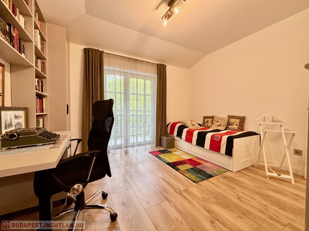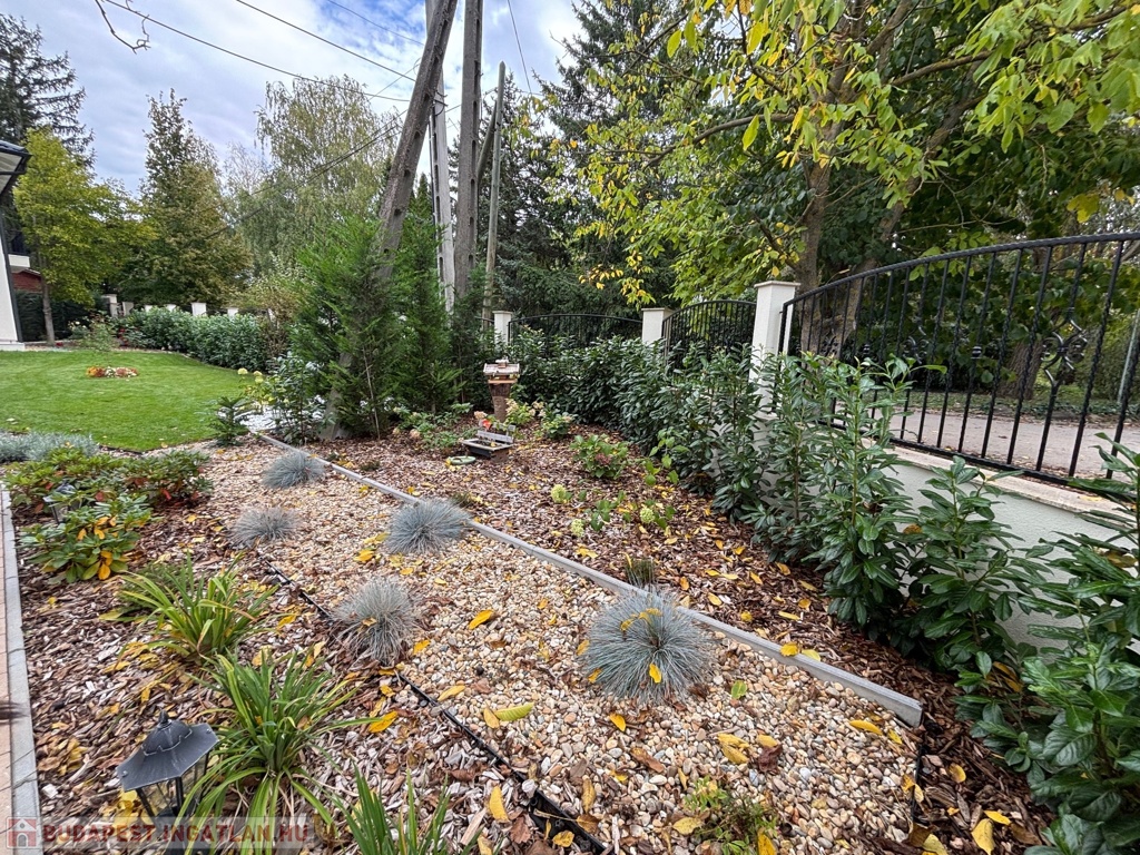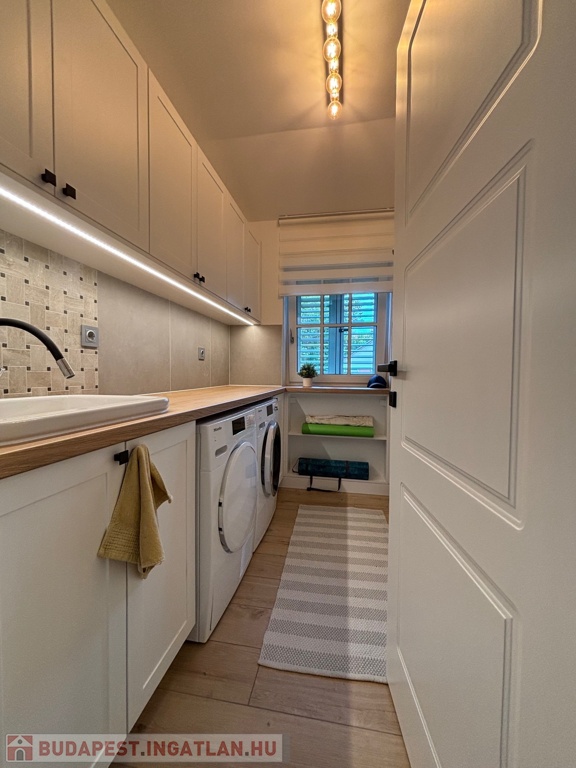 Kivételes lehetőség a II. kerület egyik legkeresettebb részén! Eladó egy frissen elkészült, amerikai stílusú luxusvilla, amely modern eleganciájával és kimagasló műszaki tartalmával valódi ritkaság a piacon. Főbb jellemzők: Nettó alapterület: 205 m² Terasz: 50 m² + minden szobához 4–6 m² erkély Telek mérete: 800 m², parkosított kert Elrendezés: kétszintes, átgondolt alaprajz, tágas terek ✨ Belső kialakítás: A földszinten elegáns előtér, világos, amerikai stílusú konyha–étkező–nappali egy légtérben, mely a családi élet központja. Ezen a szinten található egy vendégszoba saját fürdővel és WC-vel, kamra, tároló és gépészeti helyiség. Az emeletre vezető impozáns lépcső egy három hálószobás részhez érkezik, mindegyik saját fürdőszobával és erkéllyel. Két hálószobához külön gardrób, valamint mosókonyha és közlekedő is tartozik. ⚙️ Felszereltség és technológia: Daikin hőszivattyú (H-tarifa) Távvezérelhető padló- és mennyezetfűtés/-hűtés, helyiségenként szabályozható Riasztó, IP kamerarendszer Központi porszívó, vízlágyító Robotfűnyíró, automata öntözőrendszer Külső tér és extrák: A gondosan parkosított kert nyugalmat és intimitást biztosít. Kétállásos fedett gépkocsibeálló elektromos kapuval és autótöltő előkészítéssel Kültéri műhely / motortároló Dél–nyugati fekvésű, tágas terasz – tökéletes pihenésre és vendégfogadásra Ez az ingatlan a modern luxus, a kényelem és a zöldövezeti élet tökéletes harmóniáját kínálja. Tökéletes választás azoknak, akik prémium minőségű, új építésű otthont keresnek Budapest egyik legnyugodtabb, mégis központi részén.