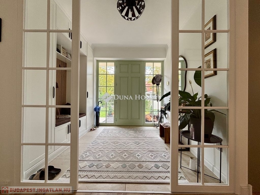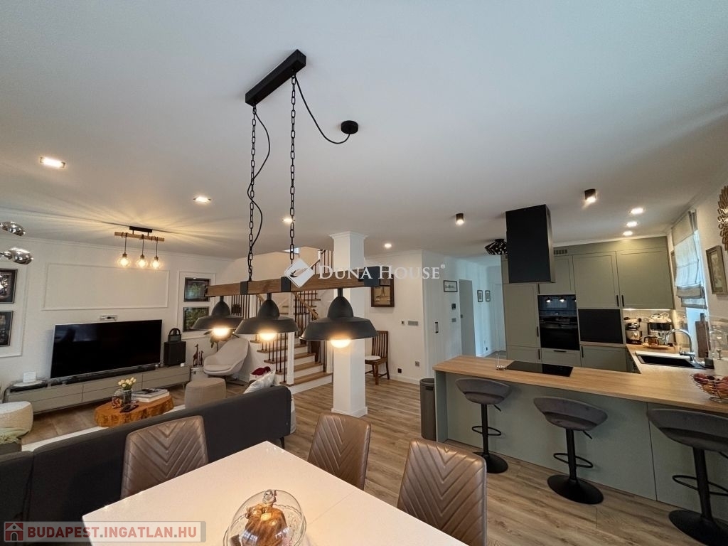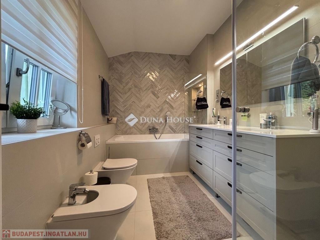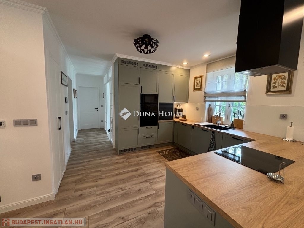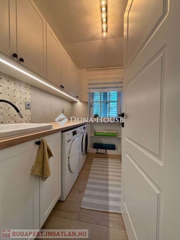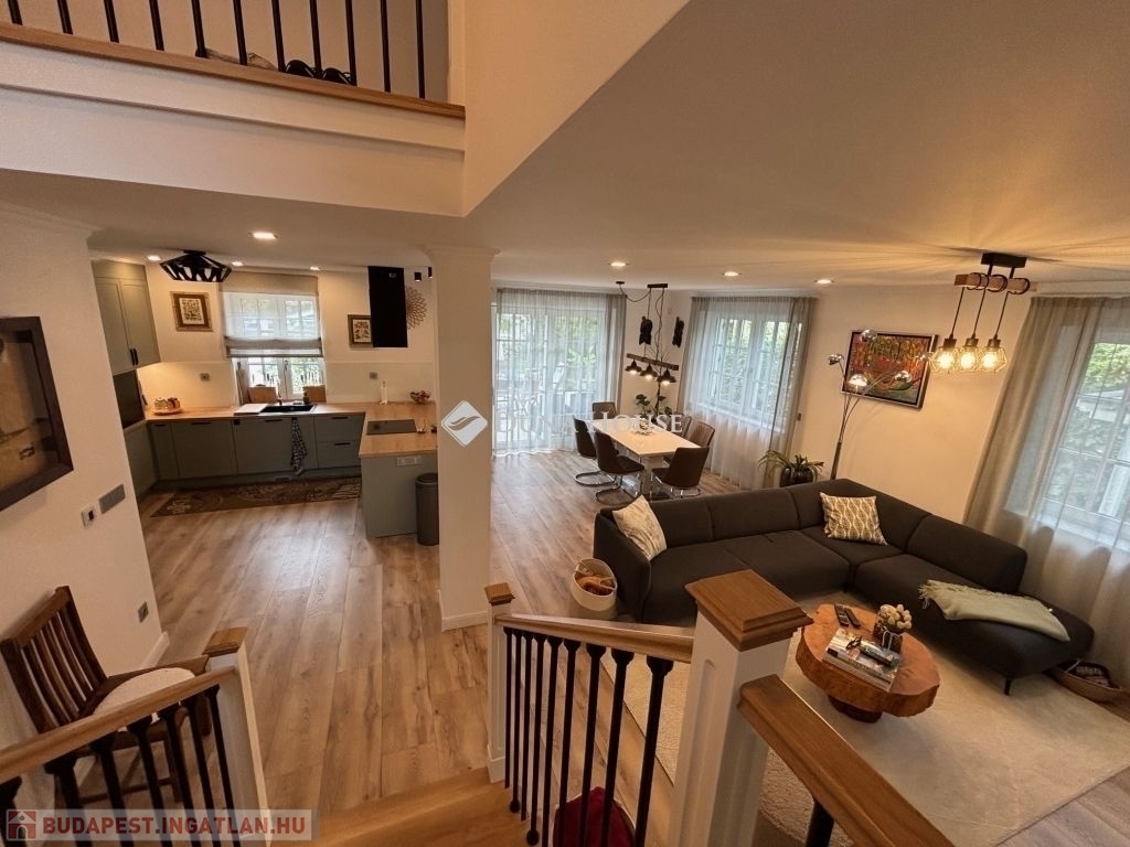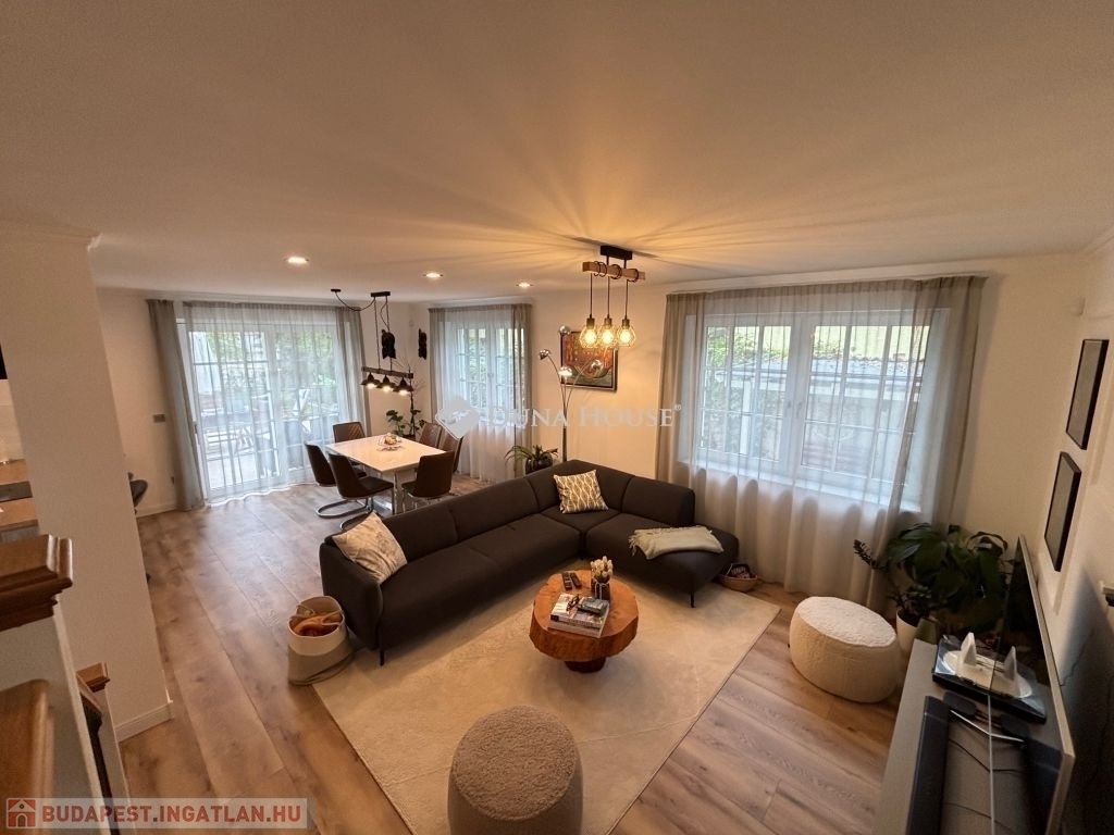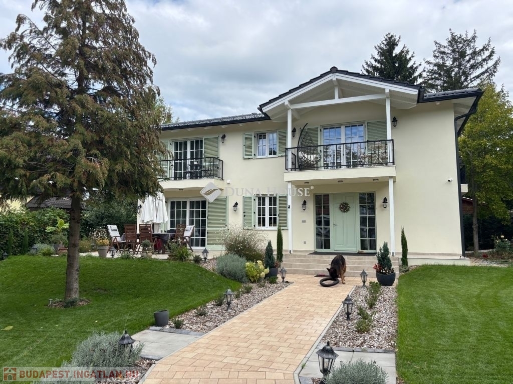 Eladó egy frissen elkészült luxusvilla Budapest II. kerületének Széphalom városrészében. Ritka és különleges, amerikai stílusú építészeti gyöngyszem egy csendes és zöldövezeti utcában. A ház nettó alapterülete 205 nm amihez tartozik egy 50nm-es terasz és minden szobához 4-6 nm erkély. Az ingatlan két lakószintes, a telek 800 m²-es parkosított kertet kínál. A földszinten egy elegáns előtér fogad, ebből belépve található egy tágas, amerikai stílusú konyha, étkező és nappali egy légtérben, amely a családi élet központja.Ezen a szinten került kialakításra egy vendégszoba saját fürdőszobával és WC-vel, valamint egy tároló, egy kamra és a gépészeti helyiség. Egy impozáns lépcsőn felérve az emeleten három erkélyes hálószoba található, mindegyikhez saját fürdőszoba és WC tartozik, két hálószobához pedig külön gardróbszoba is kapcsolódik. Ezek mellett egy mosókonyha/háztartási helyiség és egy közlekedő is helyet kapott itt. Az ingatlan különlegességét tovább fokozzák az extra felszereltségek, mint például riasztó, központi porszívó, IP kamerarendszer, robot fűnyíró, Daikin hőszivattyú (H-tarifa), távvezérelhető padló és mennyezet fűtés/ - és hűtés, ami helyiségenként szabályozható, valamint vízlágyító. A csodálatos kertről sem feledkezhetünk meg, amely gondosan parkosított és öntözőrendszerrel van ellátva. A kertben található egy fedett gépkocsibeálló 2 autó részére, elektromos kapuval és autótöltő lehetőséggel, illetve egy kültéri műhely/motortároló továbbá egy tágas DNY-i terasz, ami ideális a pihenésre és vendégfogadásra. Ez a ház tökéletes választás azon családok számára, akik az exkluzívitásra és nyugalomra vágynak Budapest egyik legelőkelőbb kerületében, mindezt elegáns környezetben, magas minőségben kivitelezett otthonban szeretnék megtenni.Az ingatlan Széphalom könnyen megközelíthető és nyugodt környezete mellett kiváló infrastruktúrával rendelkezik. A közelben találhatóak neves oktatási intézmények, nemzetközi iskolák, bevásárlóközpont, éttermek, uszoda és sportközpont és nem utolsó sorban a környék tömegközlekedése is megoldott. Ha egy olyan otthont keres, ahová csak a bőröndjét kell hoznia, itt erre is lehetőség van: az ingatlan akár teljes bútorzata is az Öné lehet. Ha felkeltette érdeklődését, keressen bizalommal!