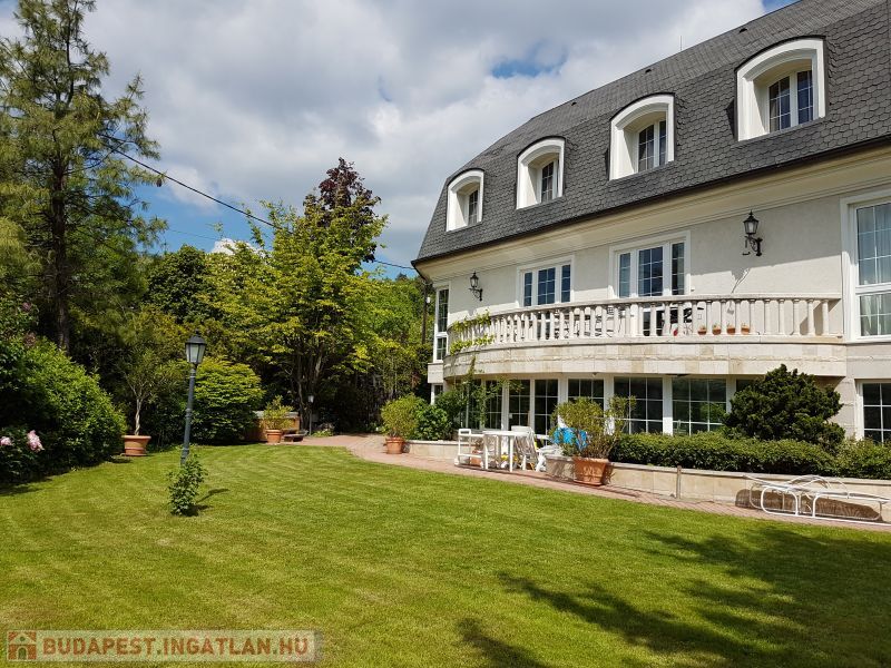 Rózsadomb-Guggerhegyen luxus szinten kivitelezett ikerházfél dupla garázzsal, hatalmas nappalival, 3 lakosztállyal, 1500m2-es teljesen intim ápolt örökzöld kertben eladó.