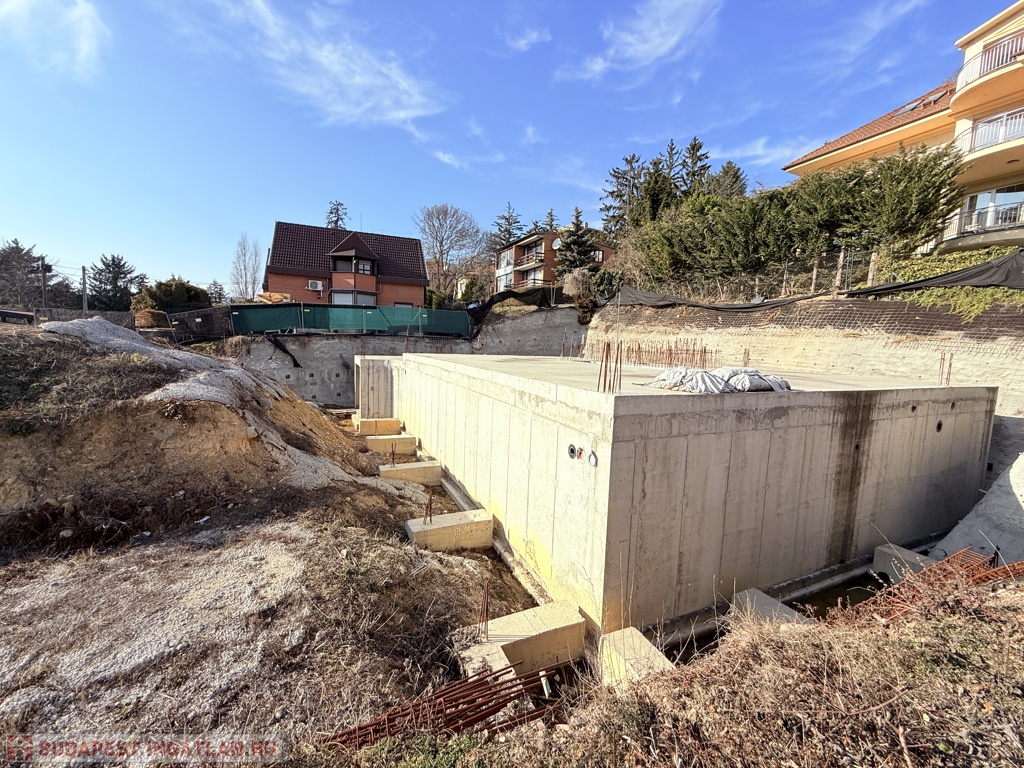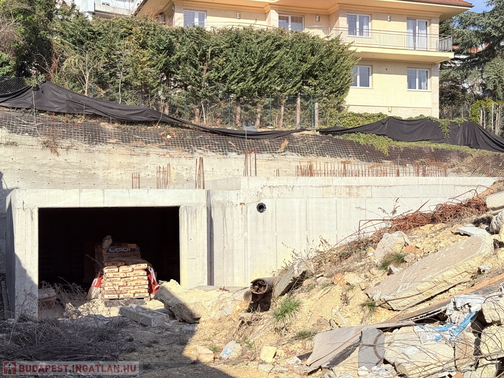 II. Törökvész középső részén, elegáns lakókörnyezetben, gyönyörű kilátással rendelkező, DÉLI tájolású, 900 nm–es, összközműves építési telekre tervezett családi villa megkezdett építkezése, elkészült garázs szinttel eladó!