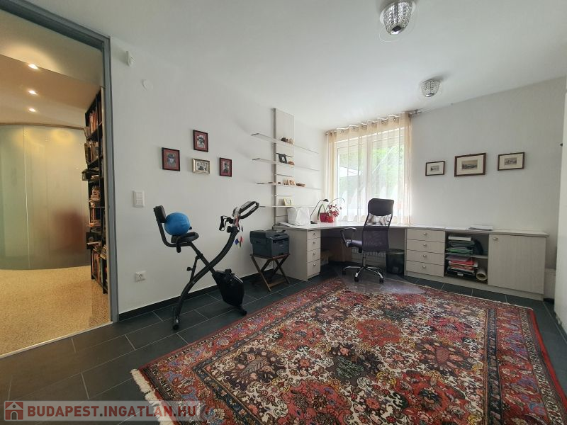 II. Pálvölgyben luxuskivitelű, tökéletesen intim, kétgenerációs ikerházfél egyedi belsőépítészeti megoldásokkal, csúcskategóriás burkolatokkal, konyhabútorral és szaniterekkel, duplagarázzsal, hatalmas terasszal, gyönyörű zöld panorámával eladó.