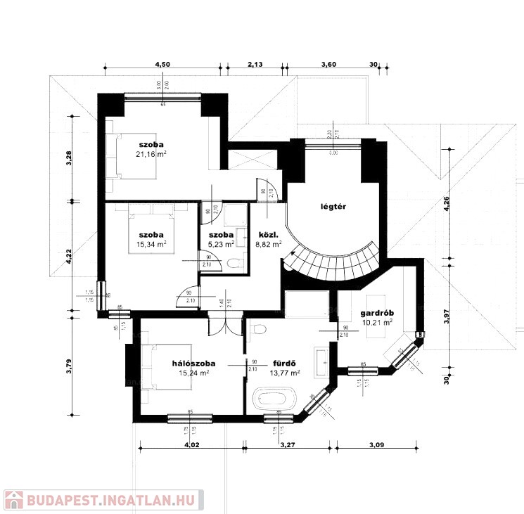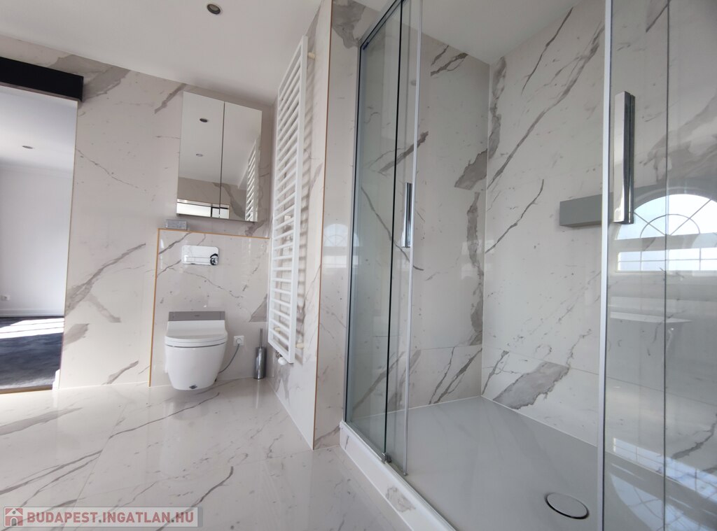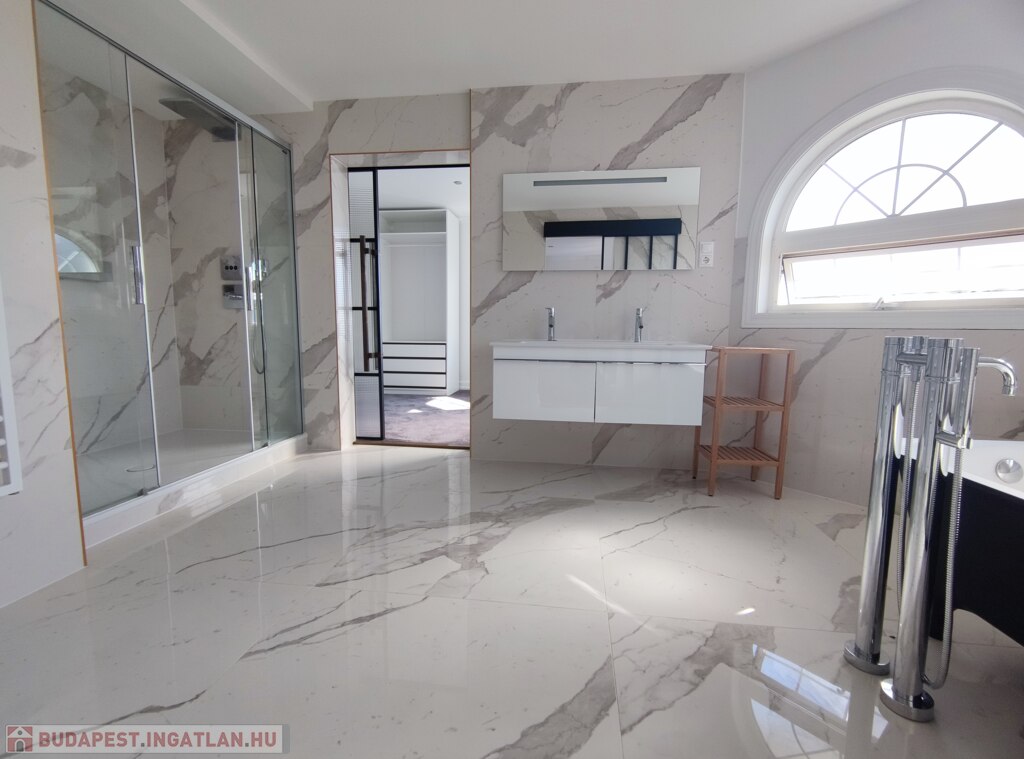 emelet: 3 külön bejáratú, légkondis hálószoba, 2 fürdőszoba, gardróbszoba, panoráma