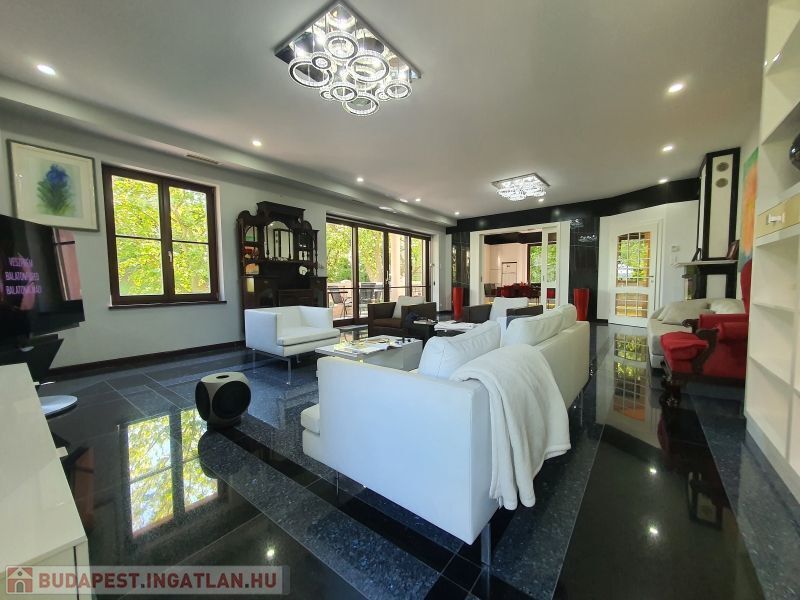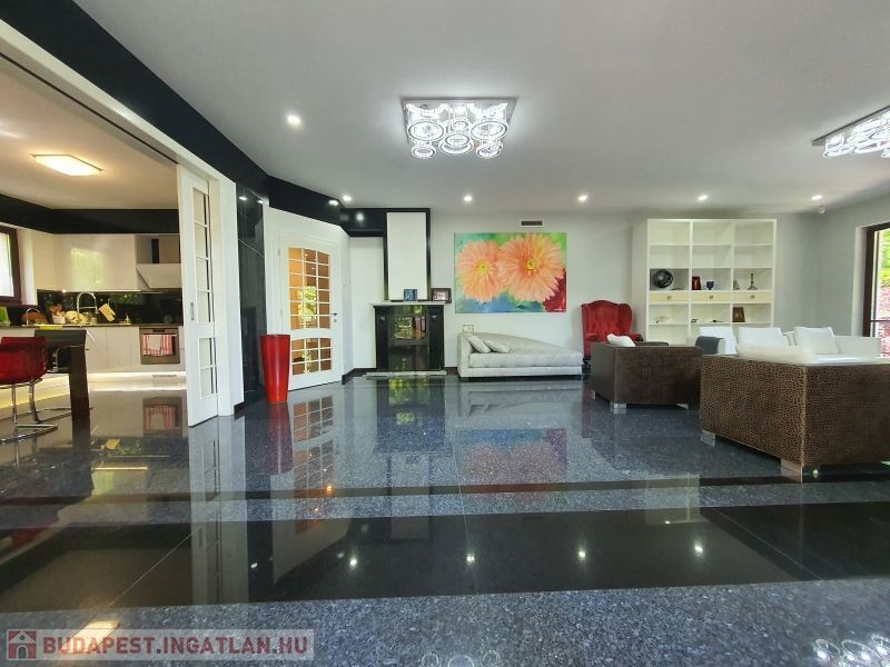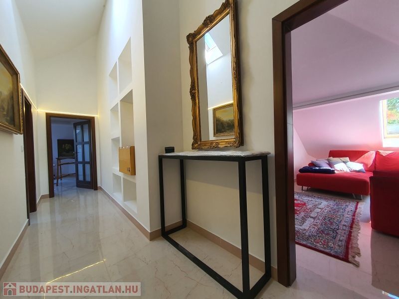 - hatalmas, kandallós nappali, szeparált konyha étkező, 4 háló + 120 m2-es tetőtéri apartman (nappali, háló, konyha, fürdő),