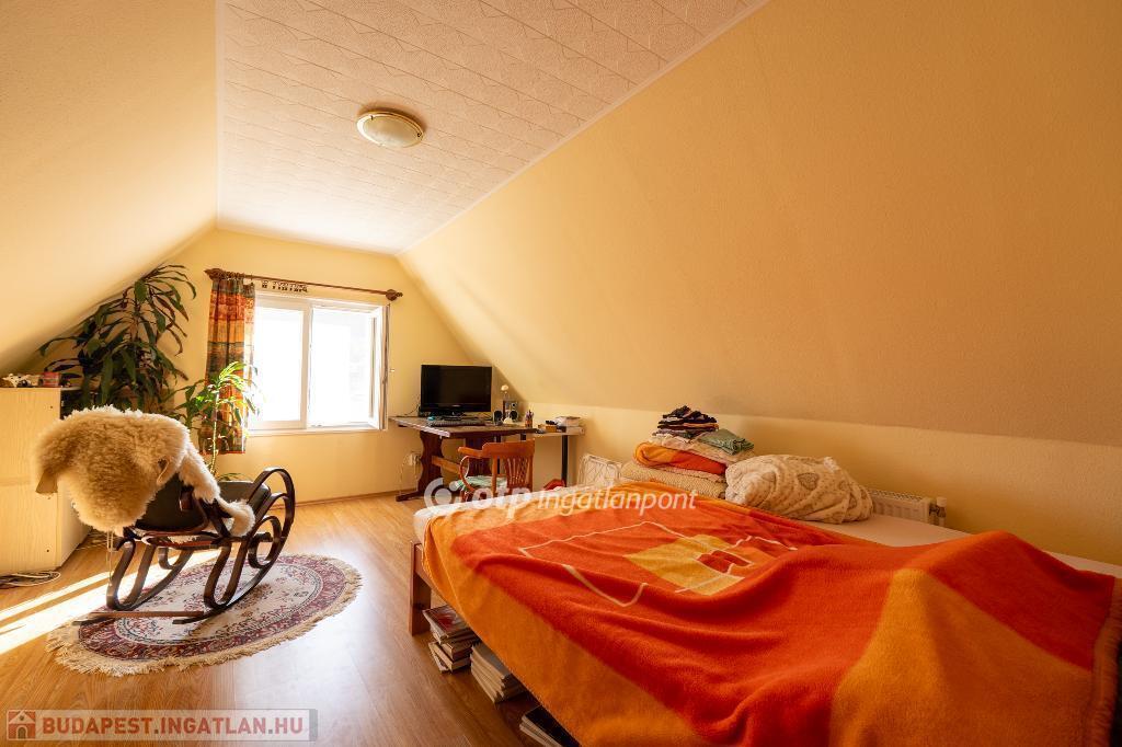Eladó Békásmegyer Ófalu csendes, mégis kiválóan megközelíthető részén egy 995 m?-es, enyhén lankás telken fekvő, 203 m2-es, nappali + 5 szobás családi ház, amelyhez egy különálló könnyűszerkezetes, nappali + 2 szobás ház, valamint több tároló épület is tartozik.