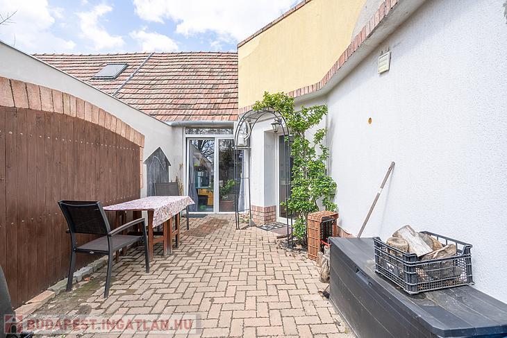 Békásmegyer- Ófaluban ELADÓ egy 90 négyzetméteres IKERHÁZ fél 300 négyzetméteres telken!