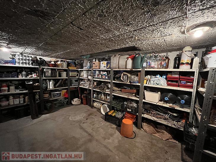 Parkolni a 22 négyzetméteres garázsban lehet, ami alatt található egy ugyanekkora méretű pince.