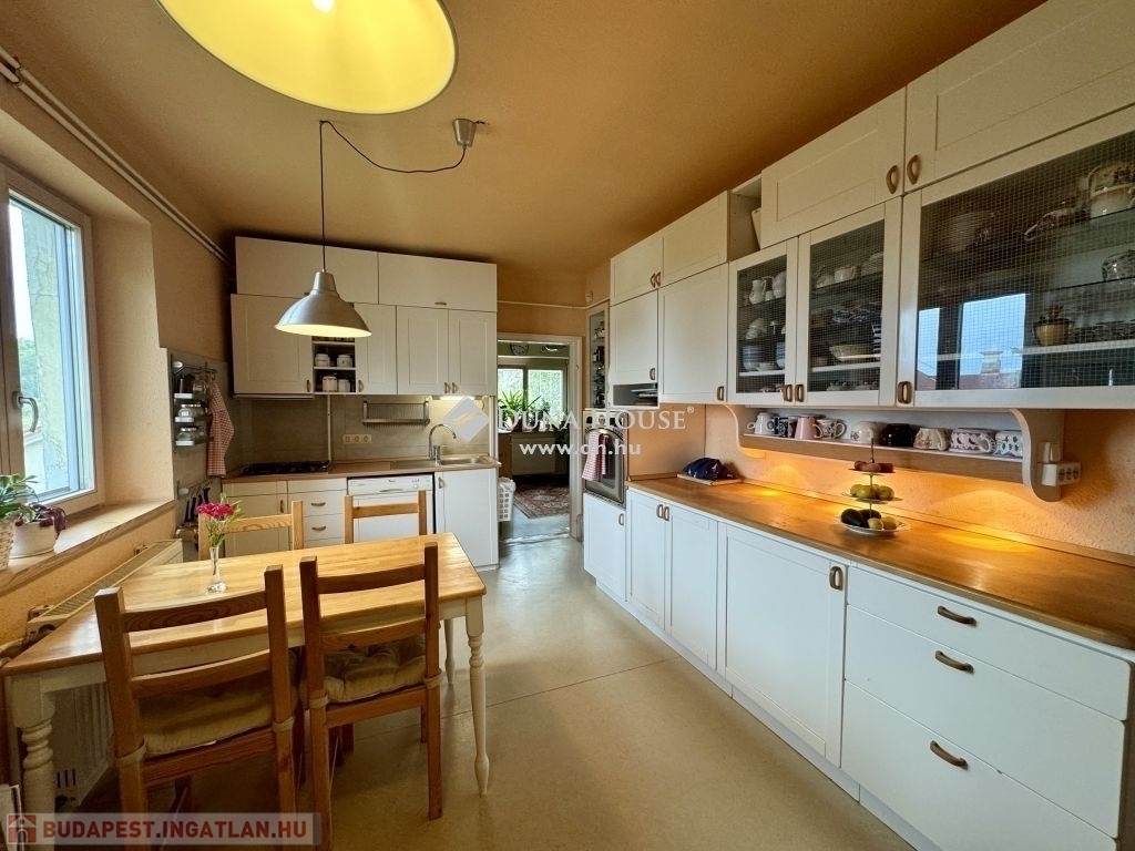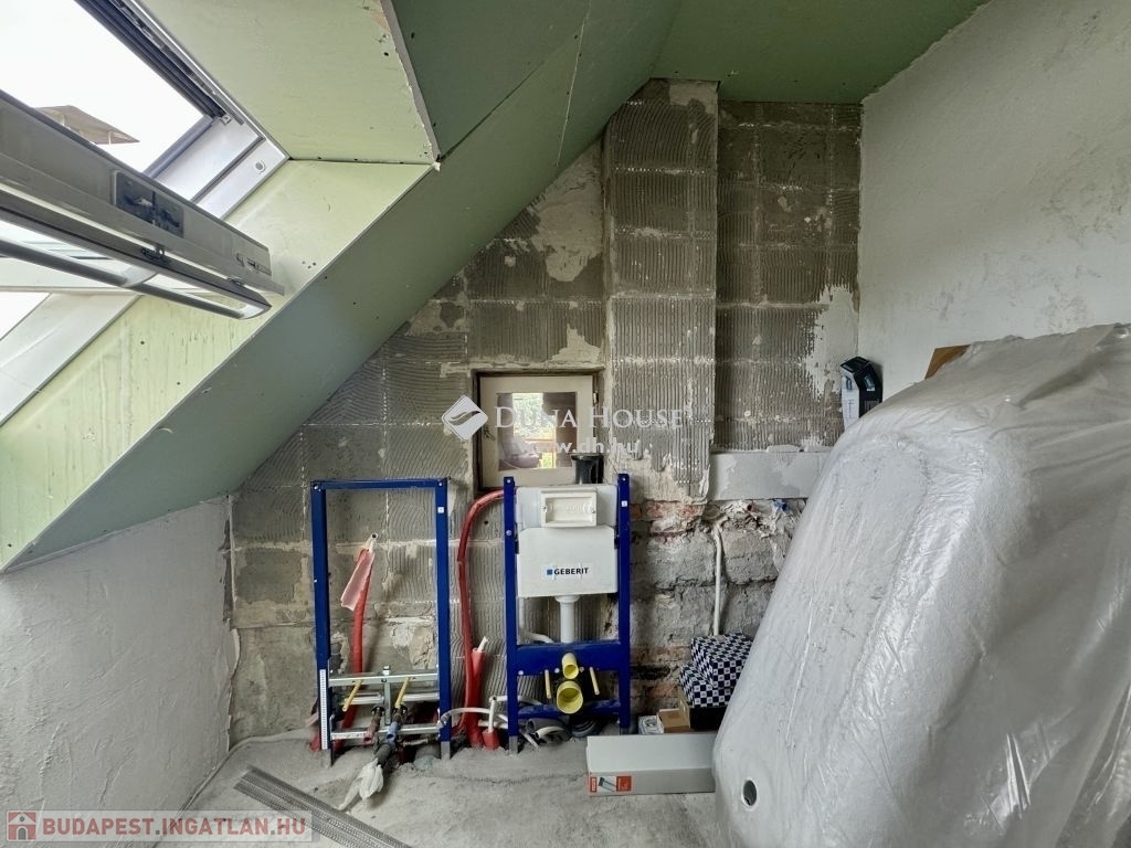 Emeleti lakás: Az udvarról egy lépcsőn át közelíthető meg. A fürdőszoba felújítása elkezdődött, amelyhez beszerzésre is kerültek az anyagok. A vízvezetékek is kicserélésre kerültek, a konyha a bejárattól balra alakítható ki jelenleg, illetve a télikertbe is kivezetésre került a víz. Az 1990-es évek elején került kiépítésre az emeleti lakás, az elektromos hálózat is akkori, jó állapotú. Felújítást igényel, jellemzően burkolási munkálatokat, azonban azt követően a Citadellától a Megyeri hídig panorámás otthon lesz.
