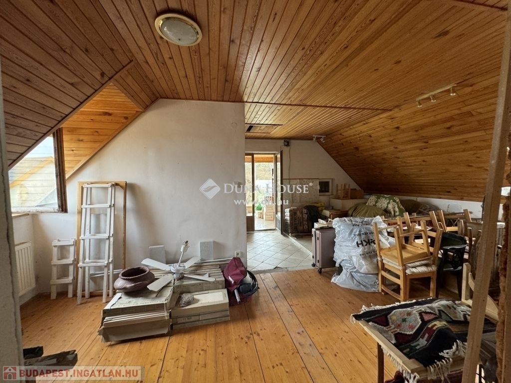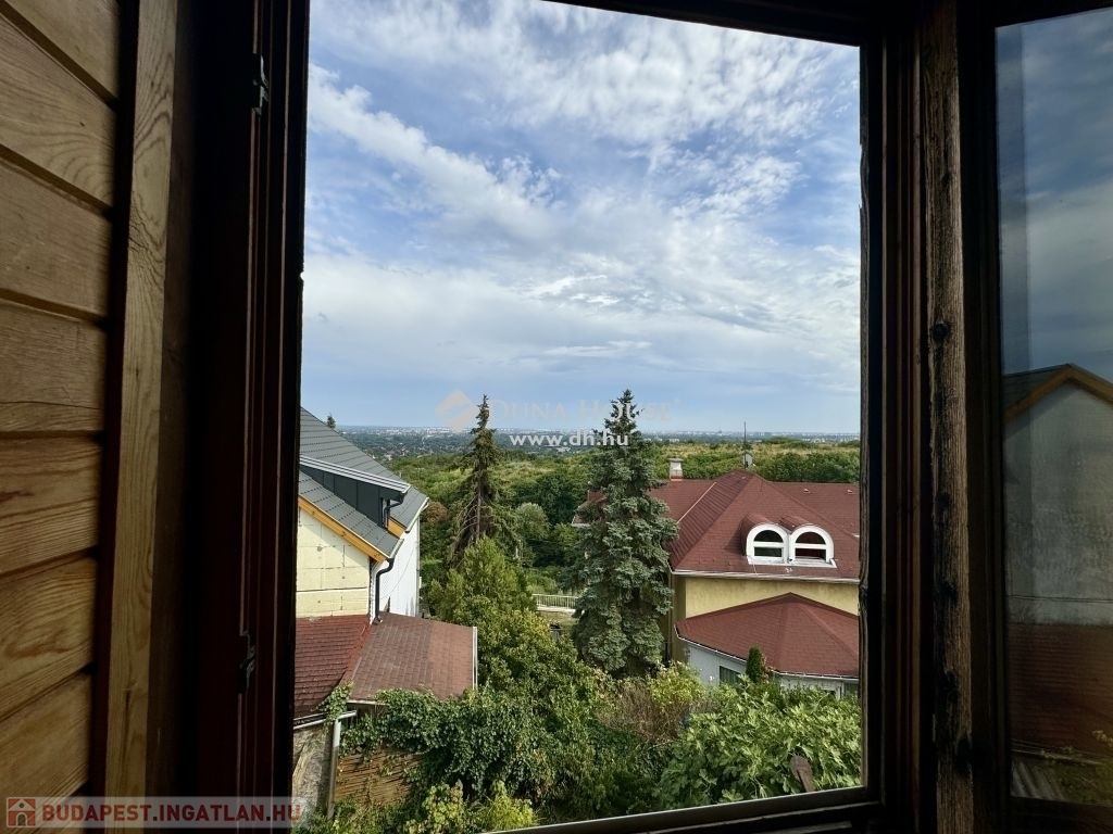 Budapest III. kerületében, Róka-hegyen, egy Ürömi útról nyíló csendes utcában eladó ez az örökpanorámás családi ház, amely egy földszinti lakásból és egy udvarról, lépcsőn át megközelíthető lakásból áll.